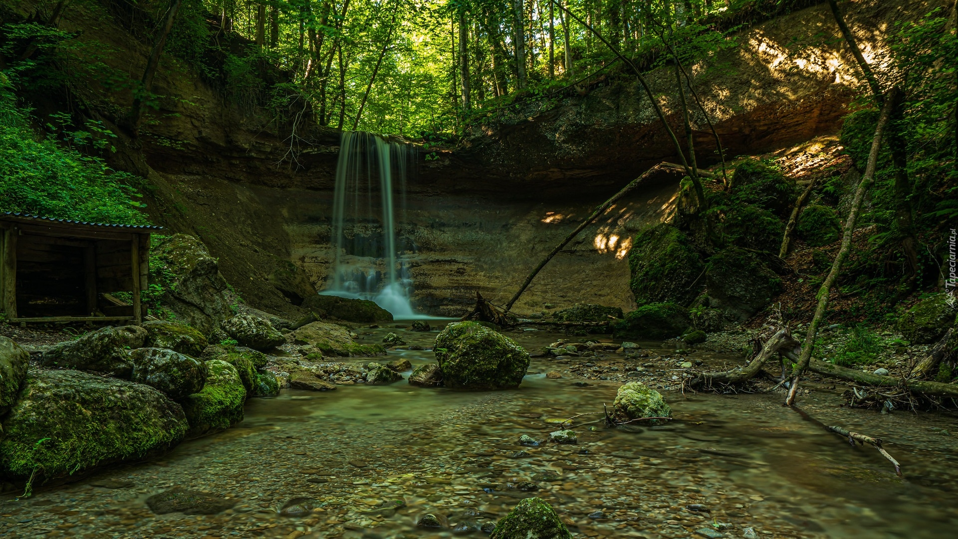 Edytor tapety: Wodospad i leśna rzeka
