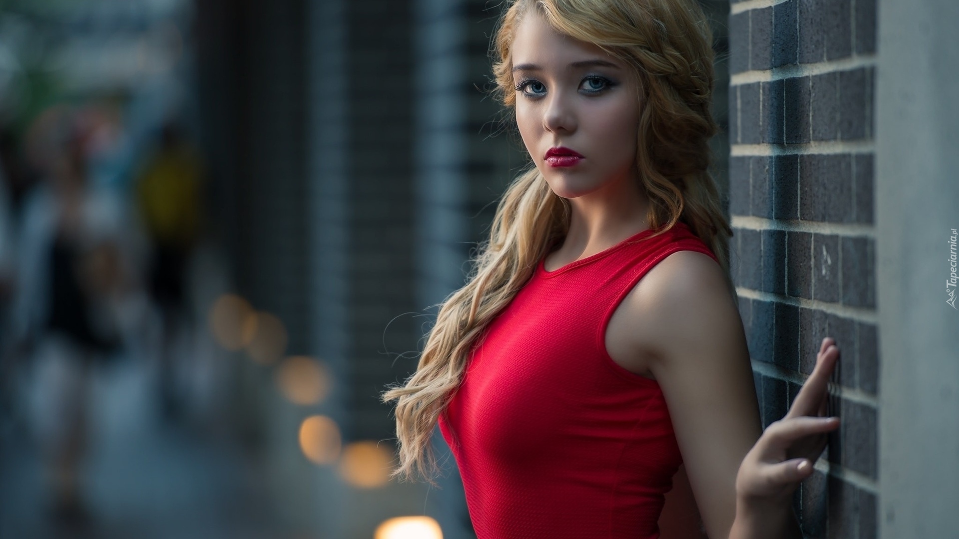 Edytor tapety: Blondynka oparta o ścianę