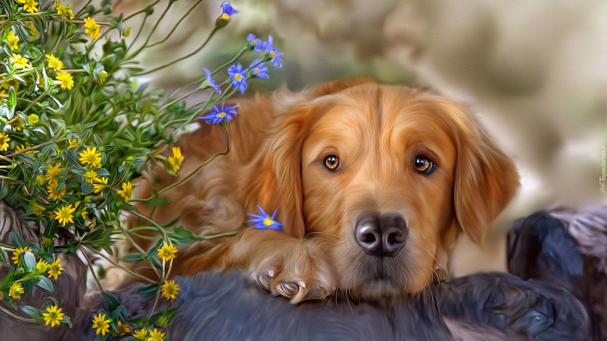 Edytor tapety: Golden retriever w grafice