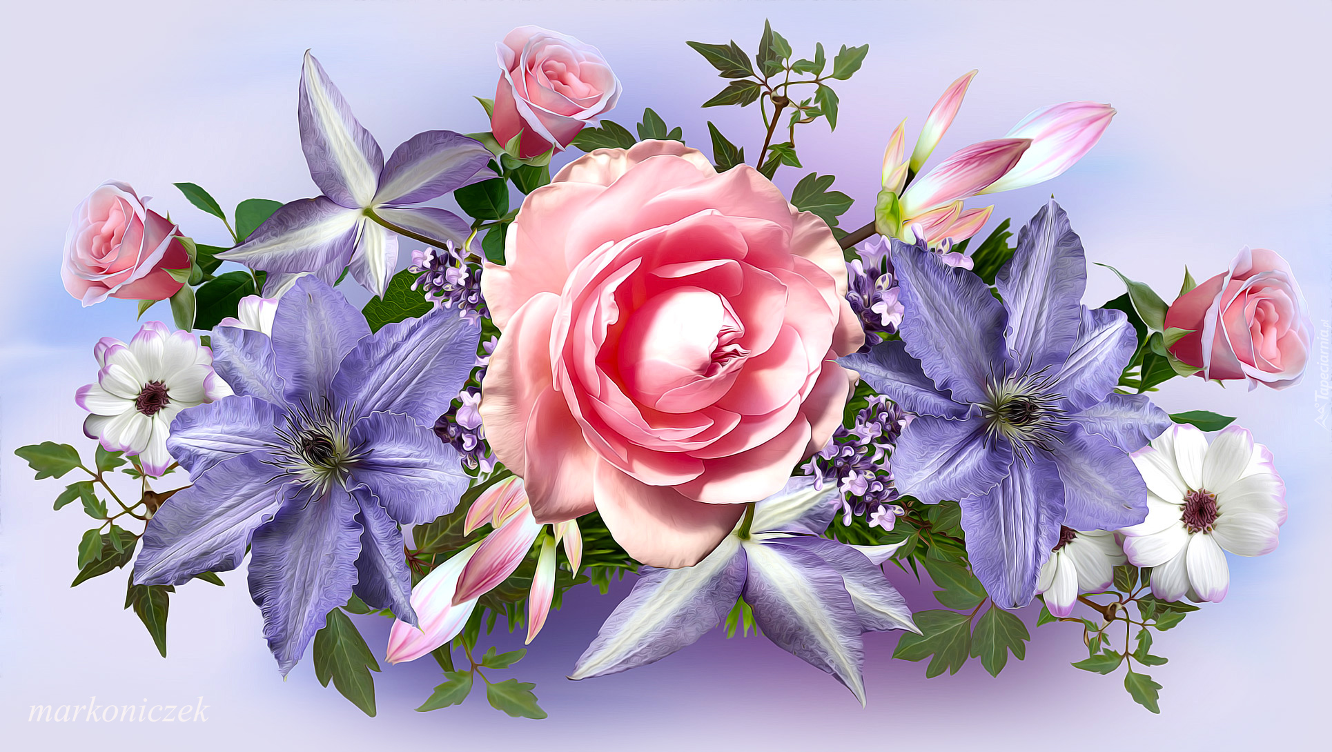 Edytor tapety: Powojniki i róże w grafice