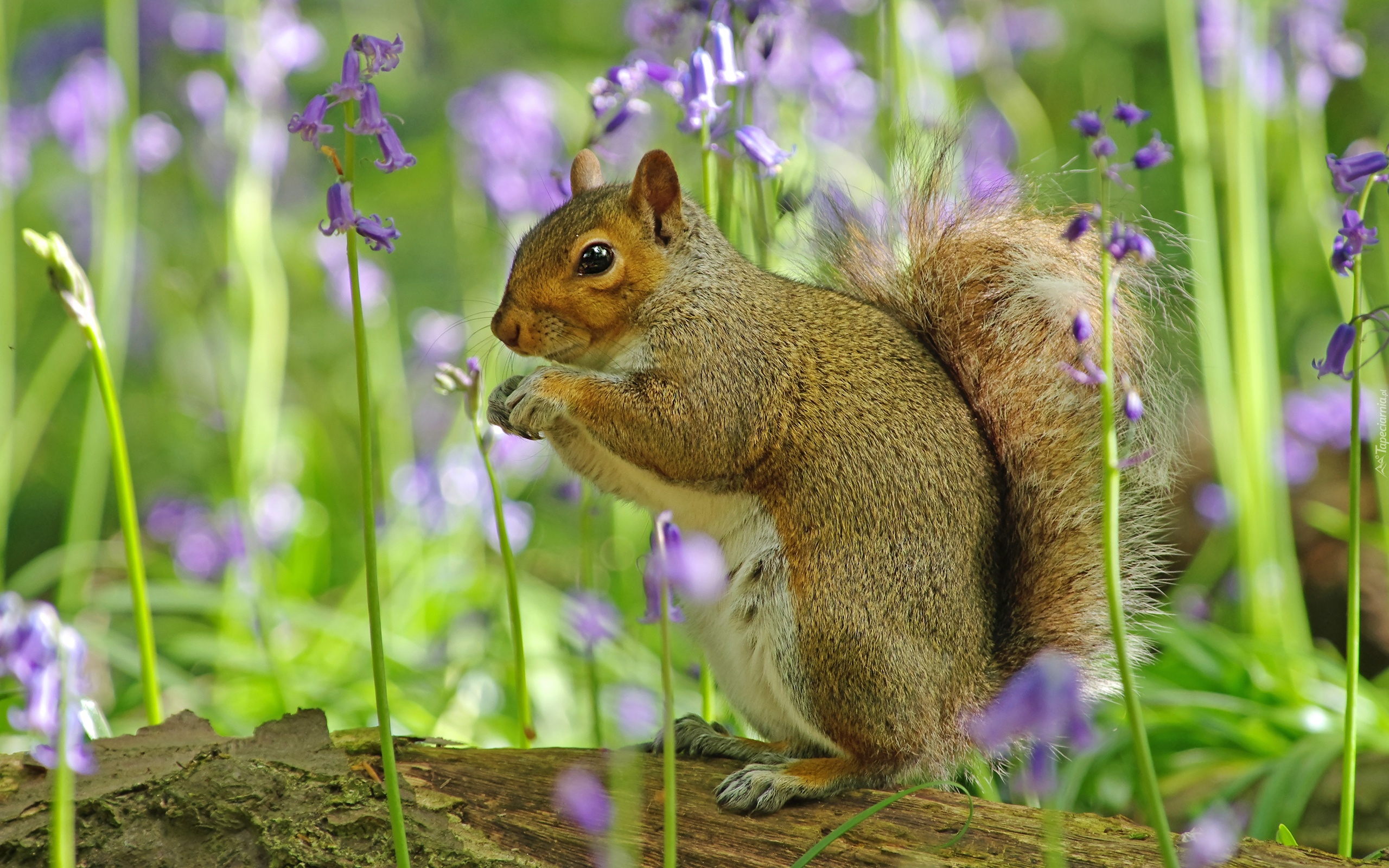 Edytor tapety: Wiewiórka wśród fioletowych dzwonków