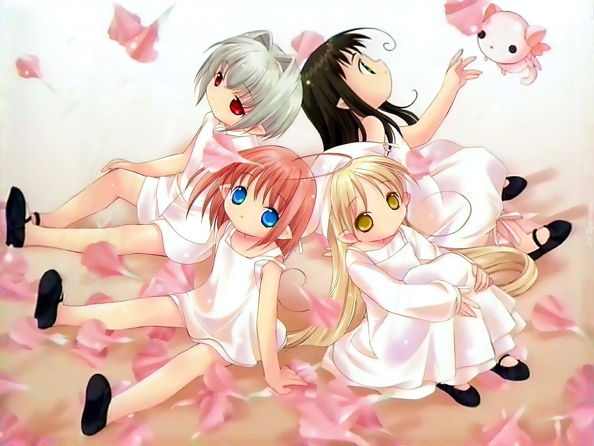 Edytor tapety: Bottle Fairy, dziewczynki, kotek, sukienki