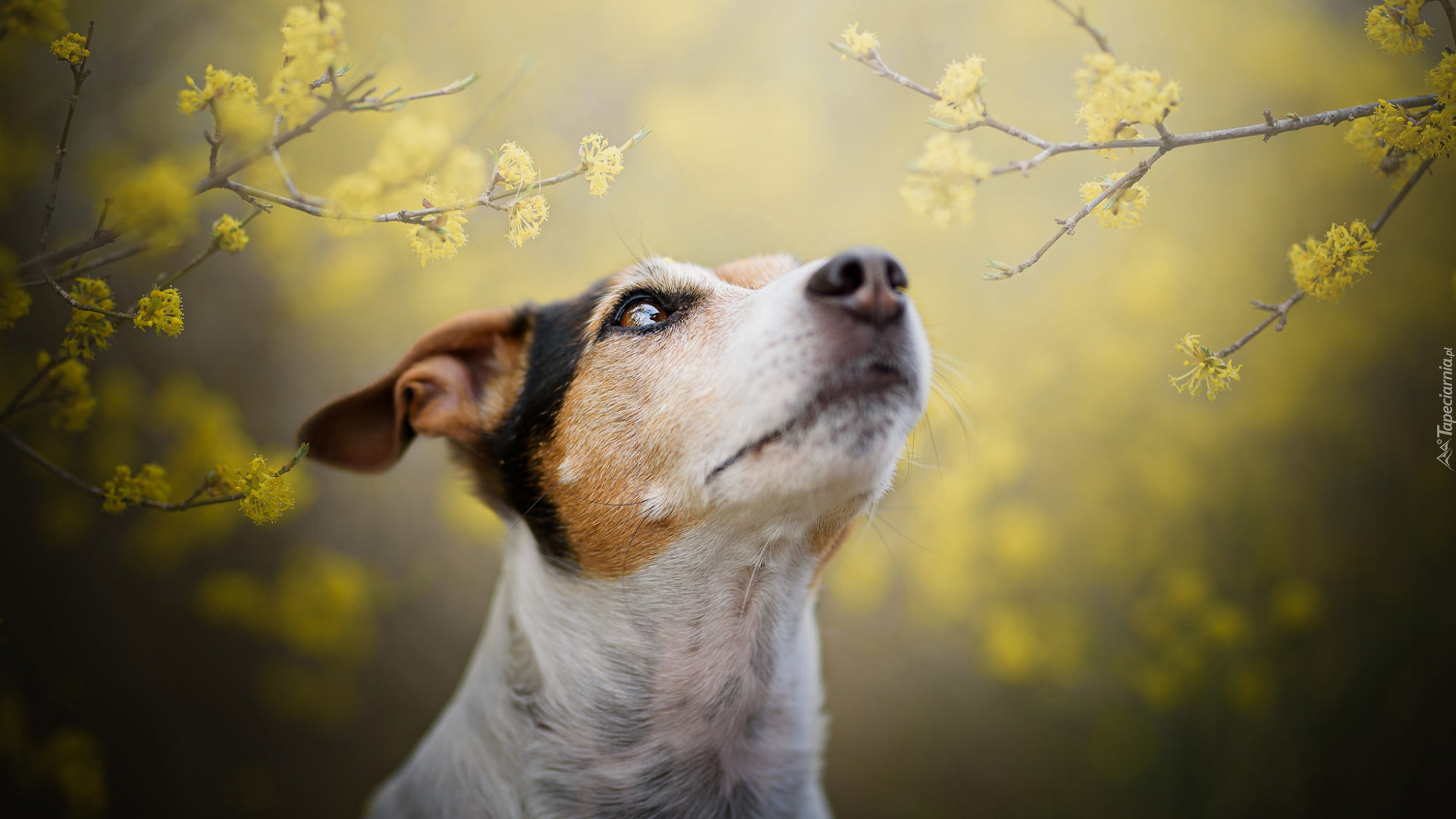 Edytor tapety: Jack Russell terrier pod gałązkami