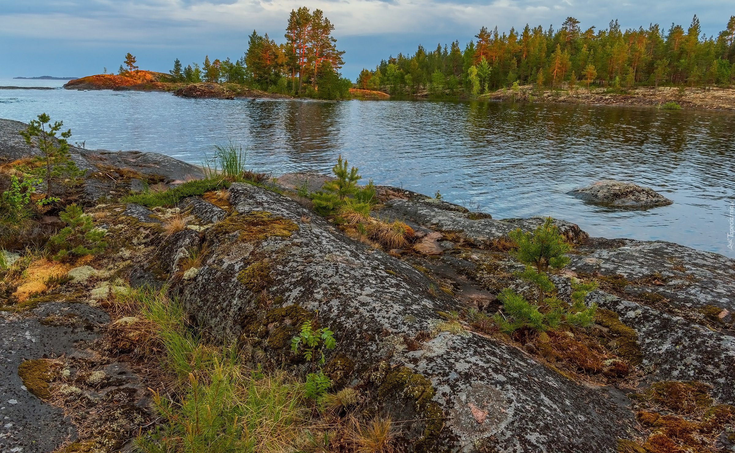 Edytor tapety: Skały i drzewa nad jeziorem Ładoga