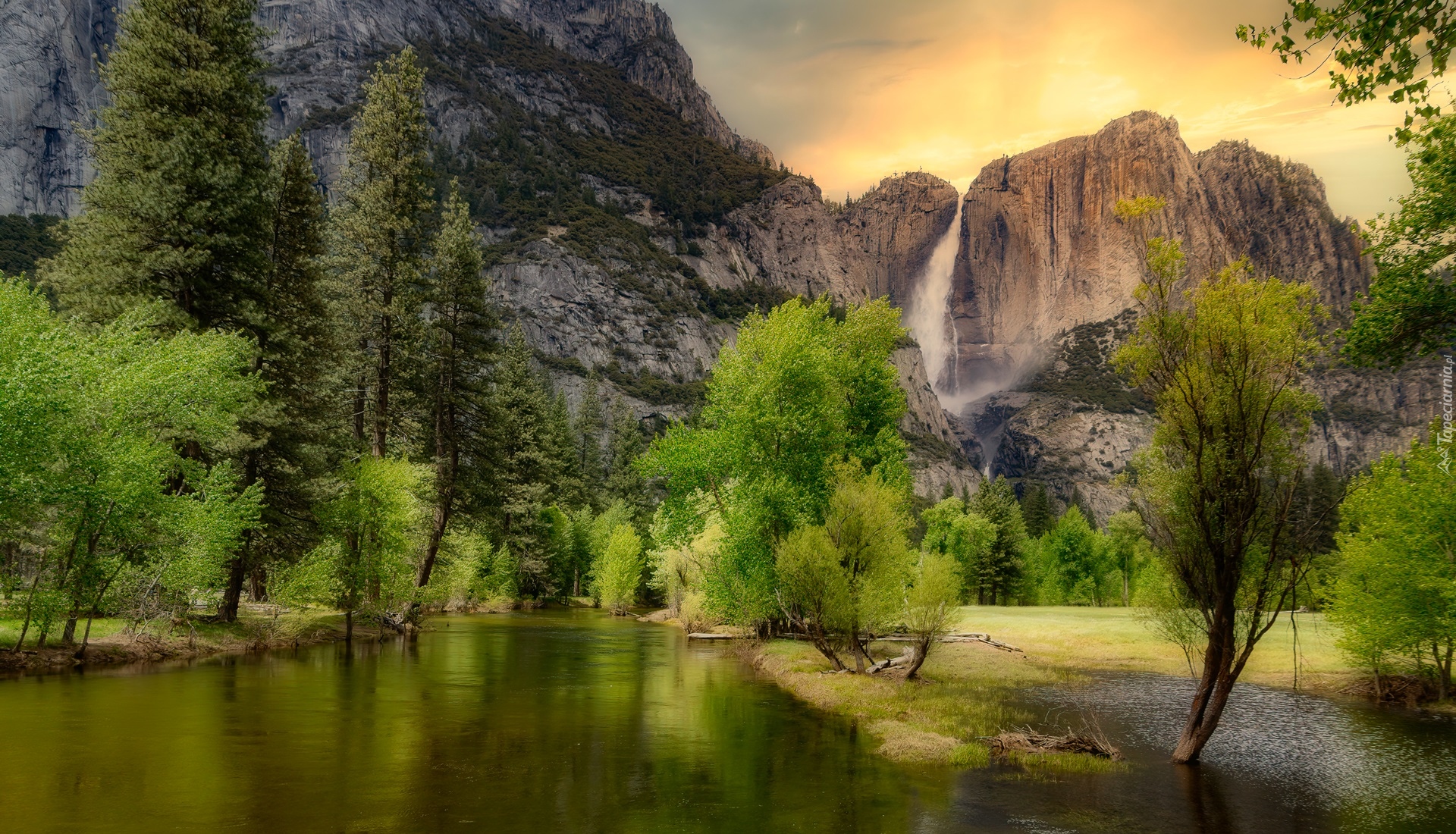 Edytor tapety: Drzewa nad rzeką w Parku Narodowym Yosemite