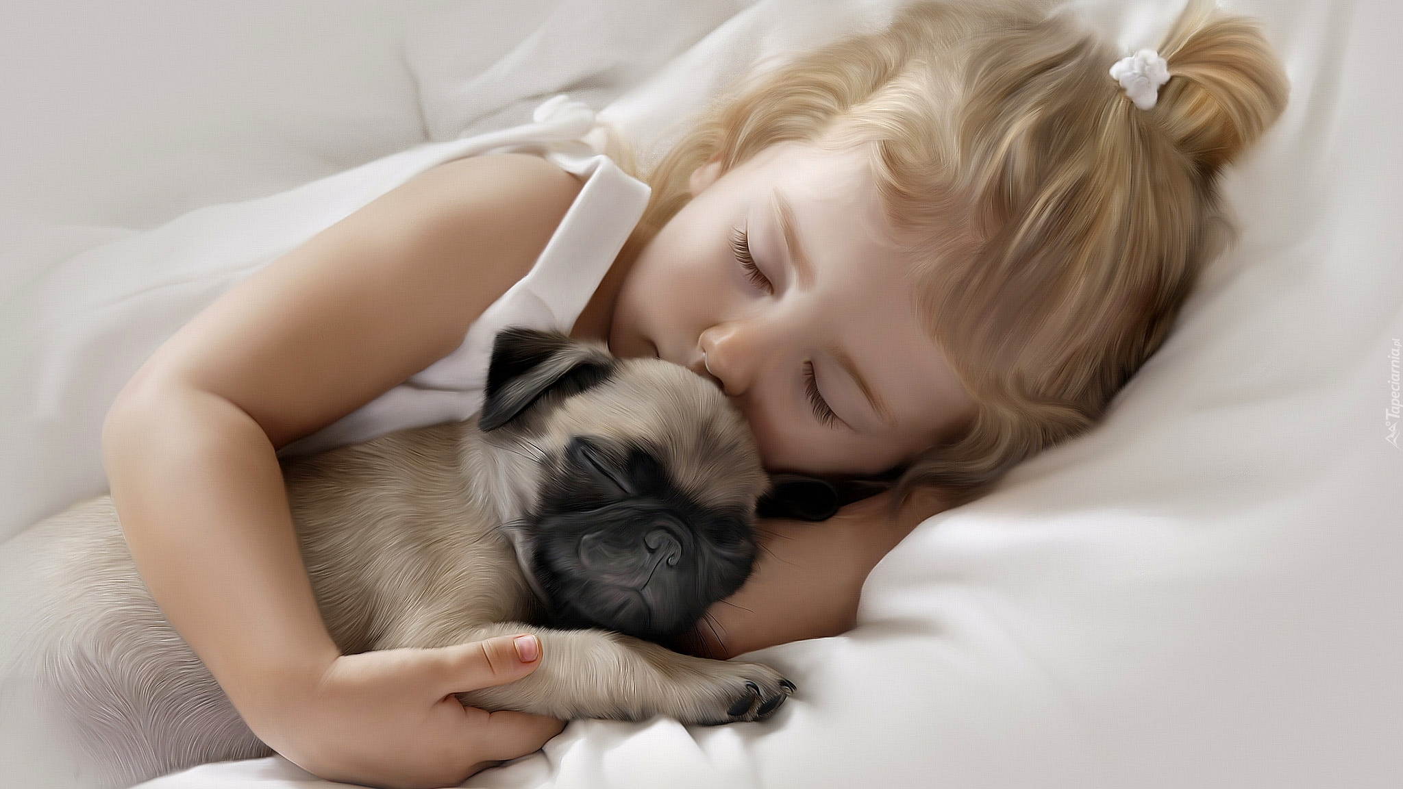 Edytor tapety: Śpiąca dziewczynka z małym mopsem