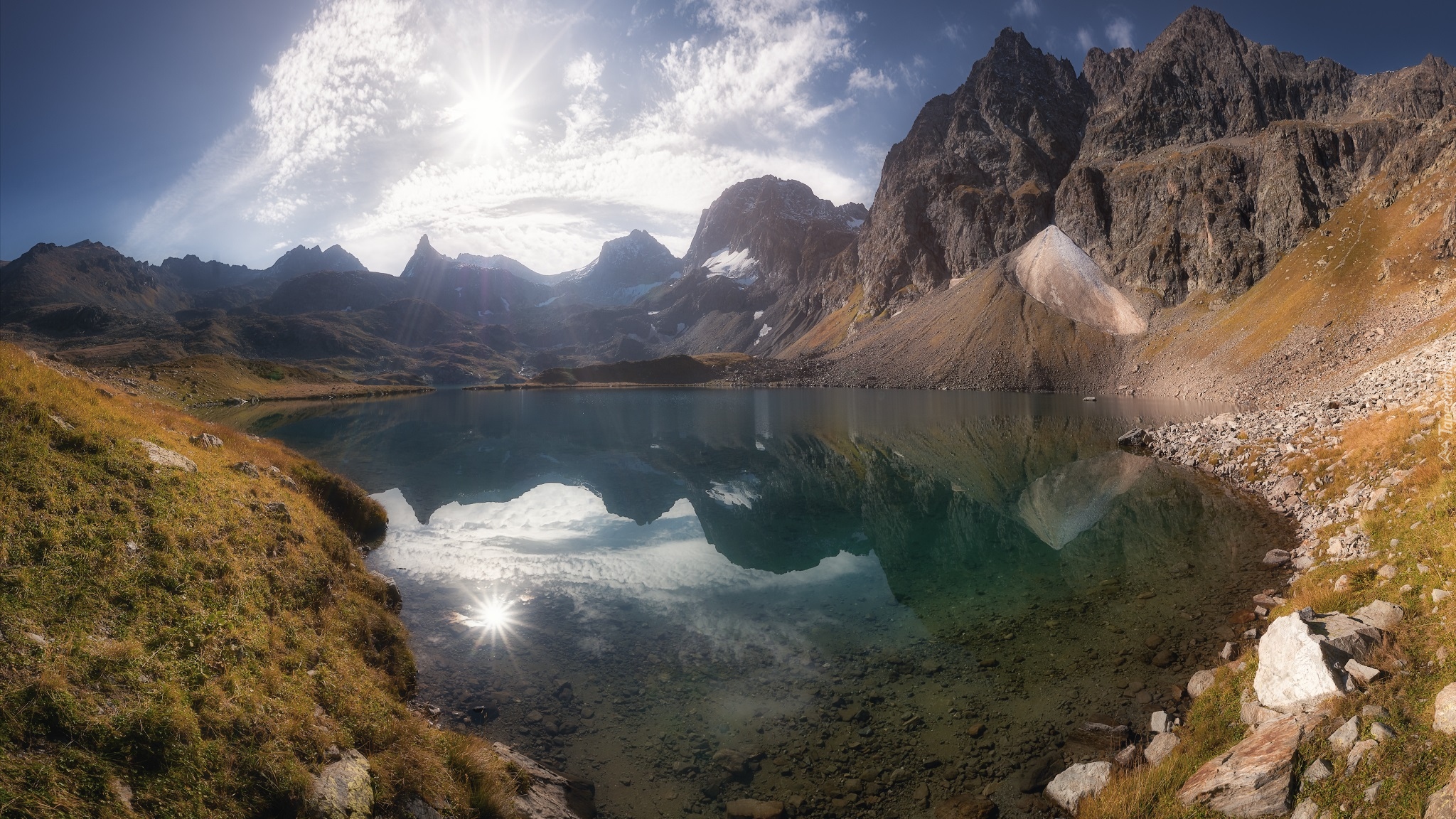 Edytor tapety: Jezioro wśród skalistych gór