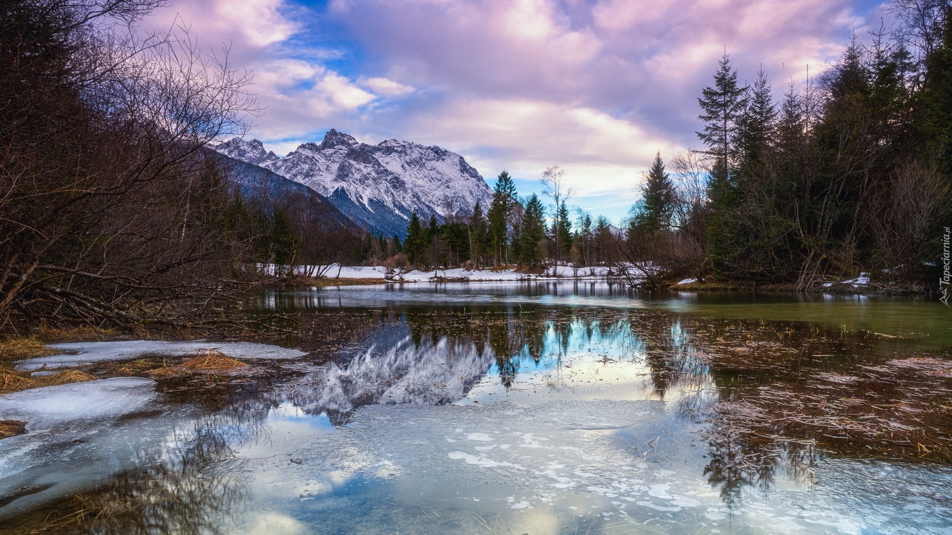 Edytor tapety: Śnieg nad górskim jeziorem