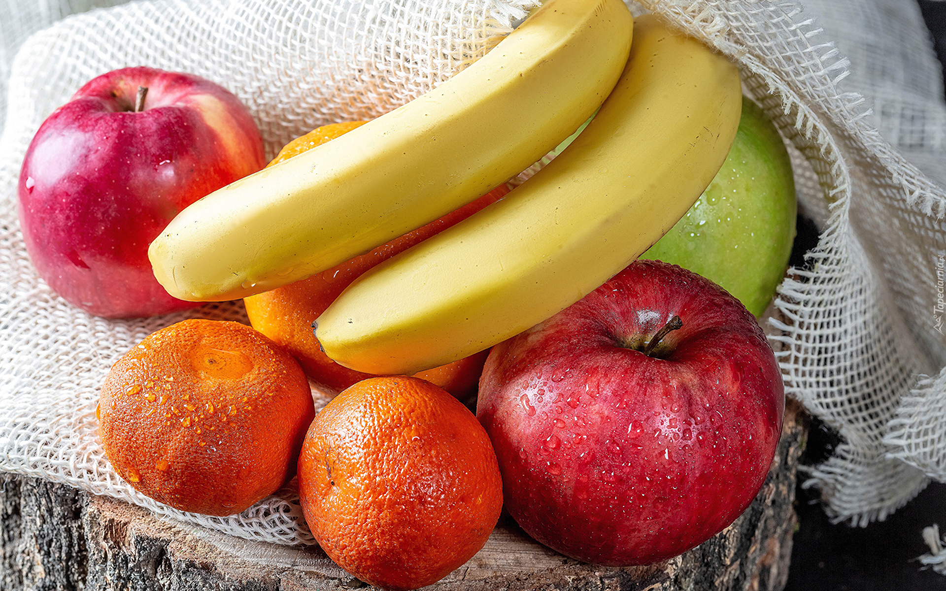 Edytor tapety: Banany na jabłkach i mandarynkach