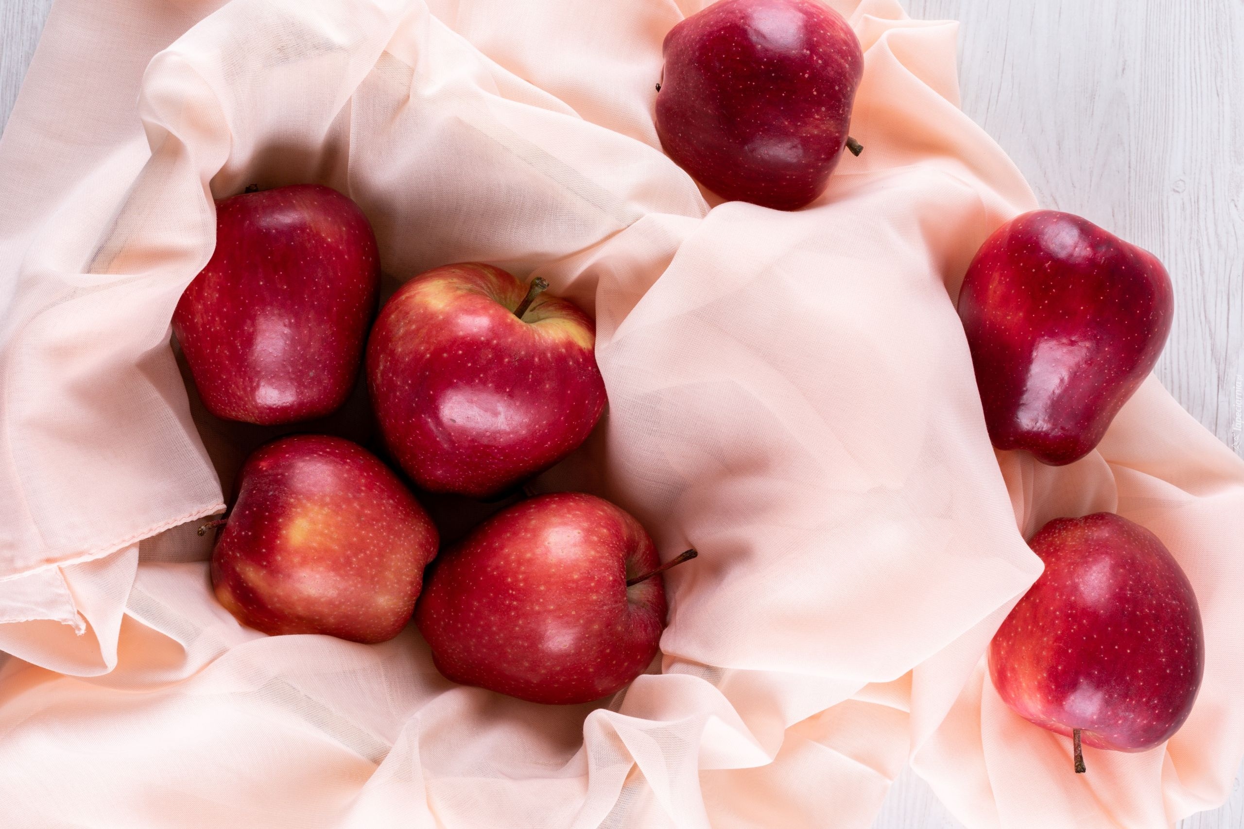 Edytor tapety: Czerwone jabłka na materiale