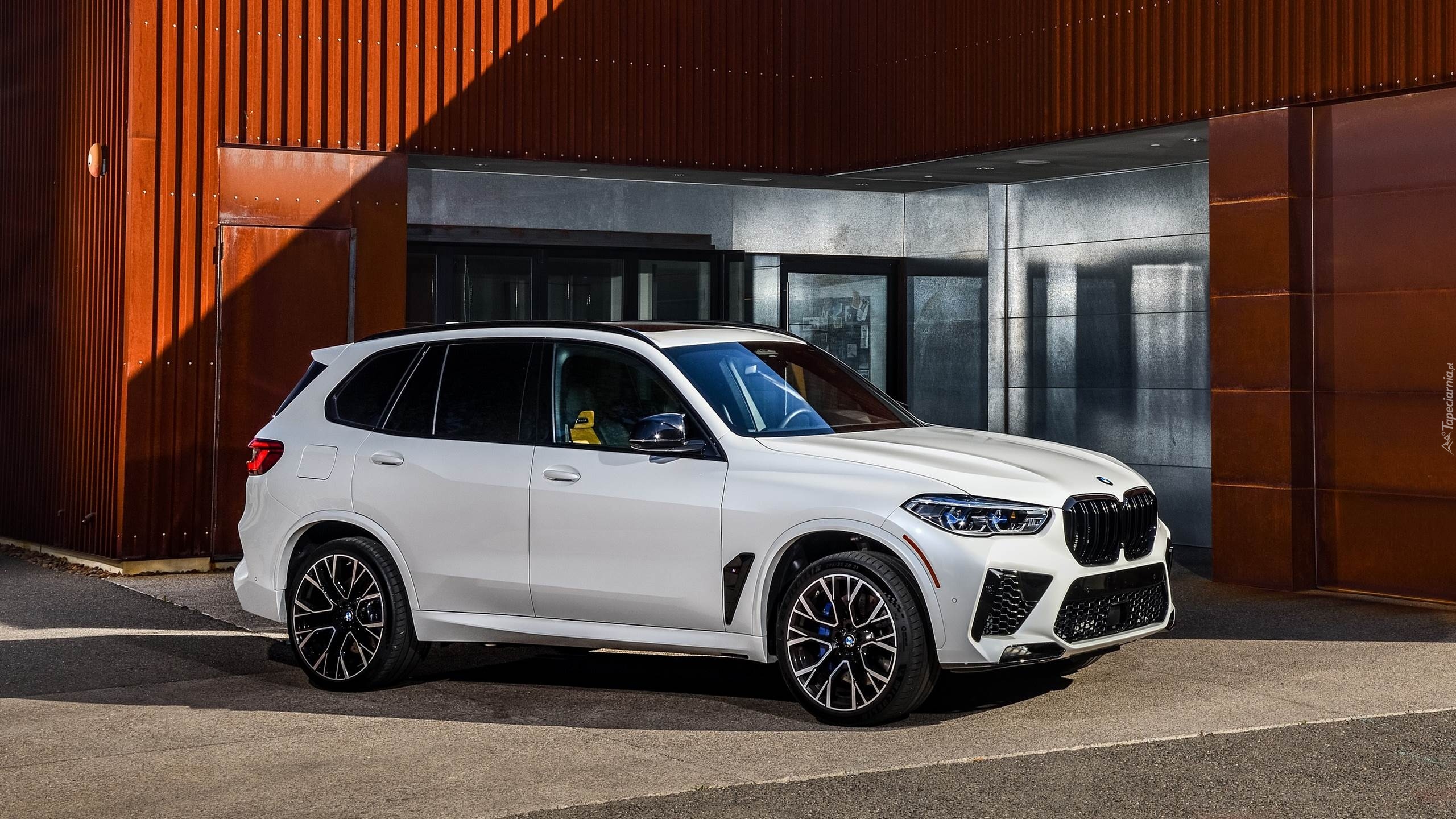 Edytor tapety: Białe BMW X5 M Competition przed budynkiem