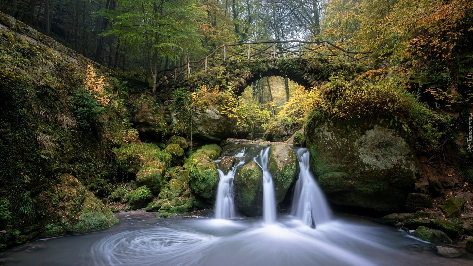 Edytor tapety: Most nad wodospadem Schiessentumpel w Luksemburgu