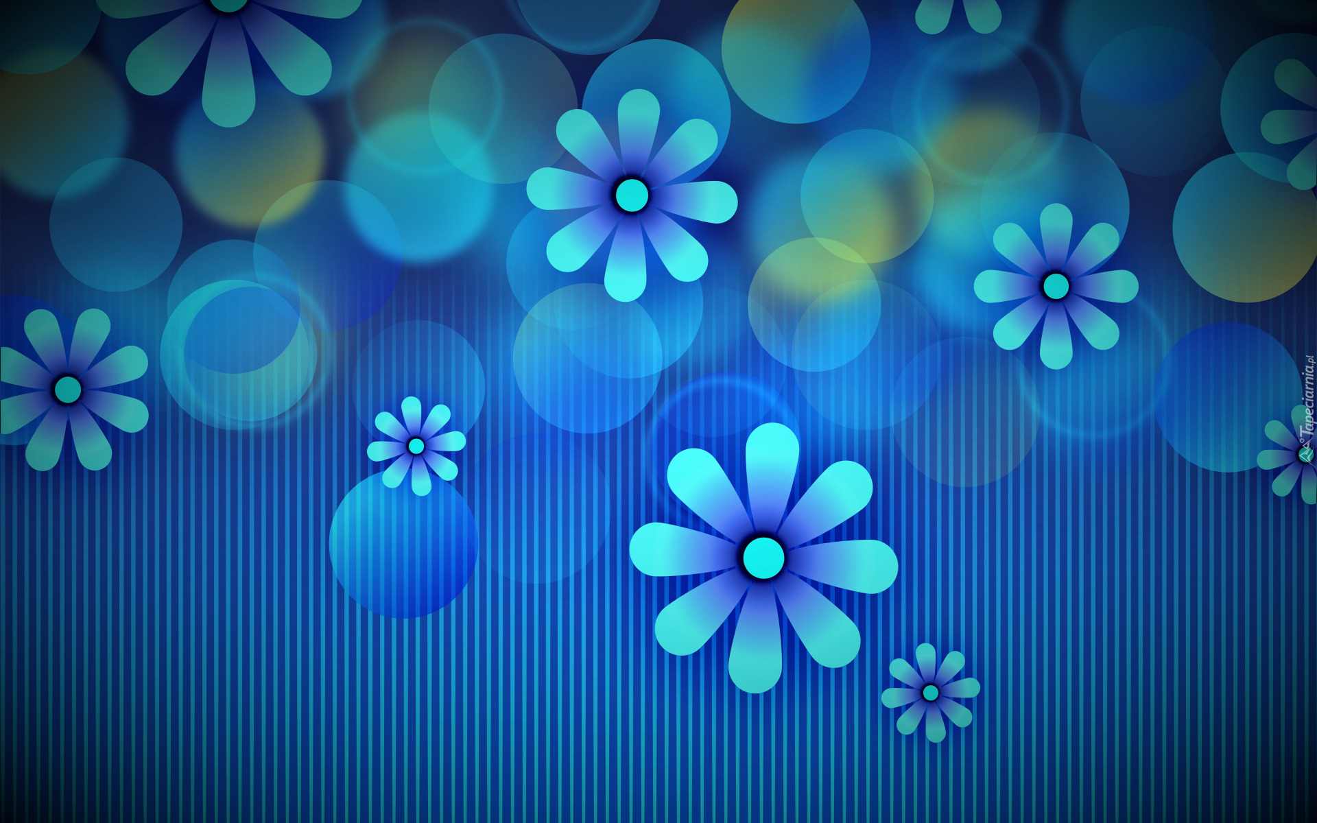 Edytor tapety: Grafika z kwiatami na niebieskim tle