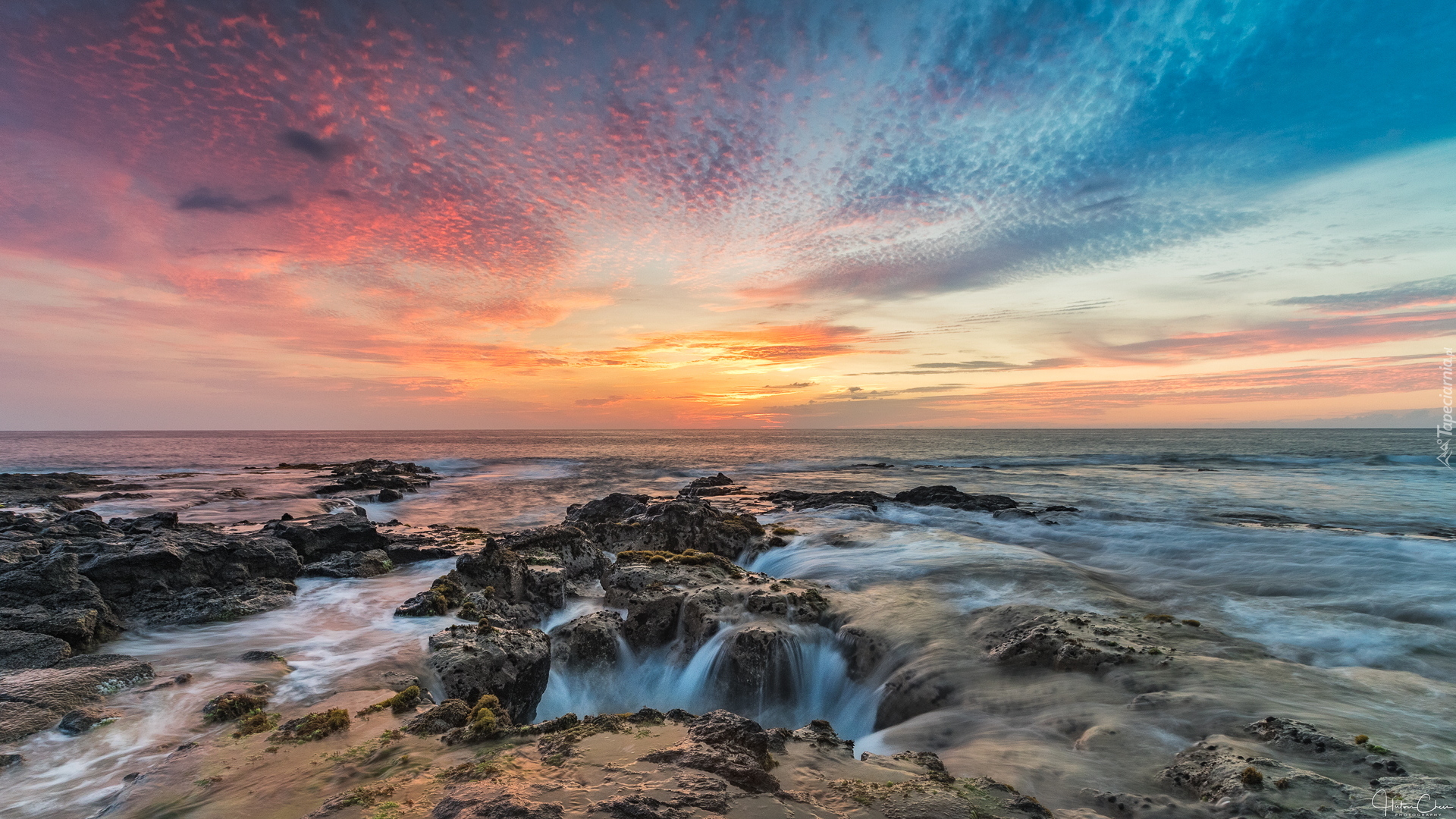 Edytor tapety: Chmury nad morzem na kolorowym niebie