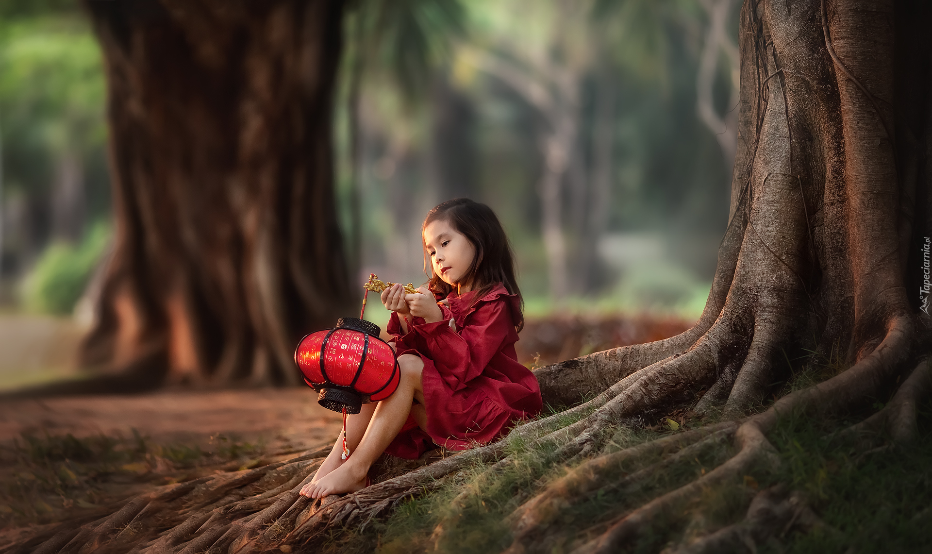 Edytor tapety: Dziewczynka z lampionem pod drzewem