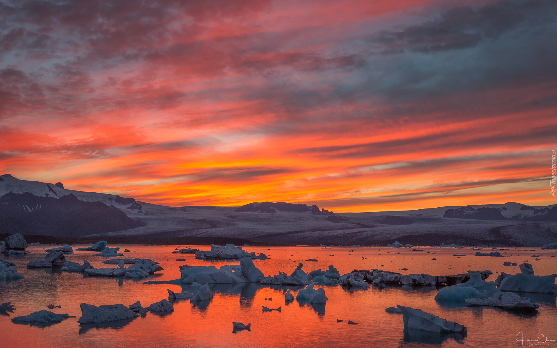 Edytor tapety: Jezioro Jokulsarlon o zachodzie słońca