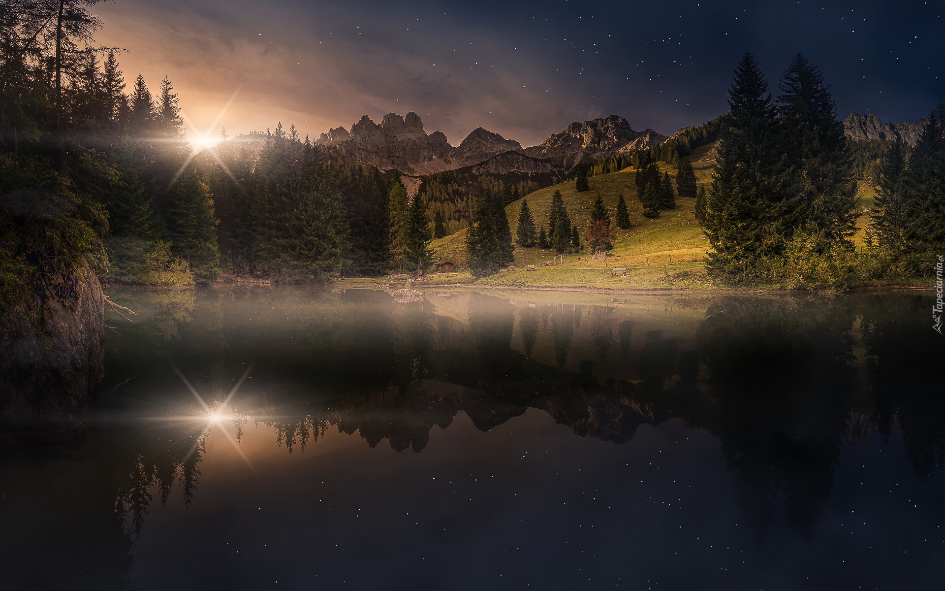 Edytor tapety: Jezioro Almsee z widokiem na góry Gosaukamm