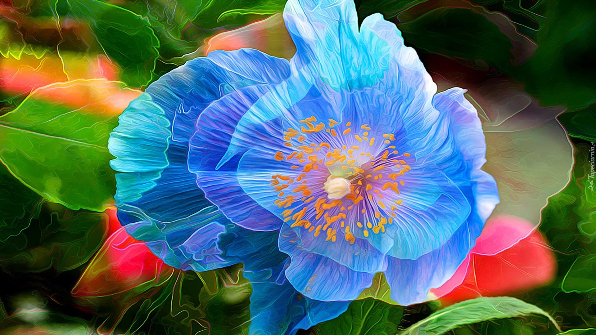 Edytor tapety: Niebieski kwiat z pręcikami w grafice