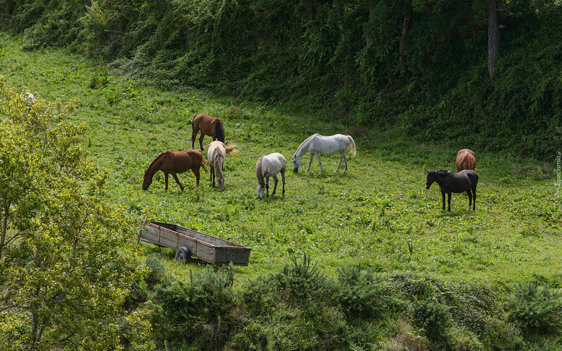Edytor tapety: Pasące się konie na łące