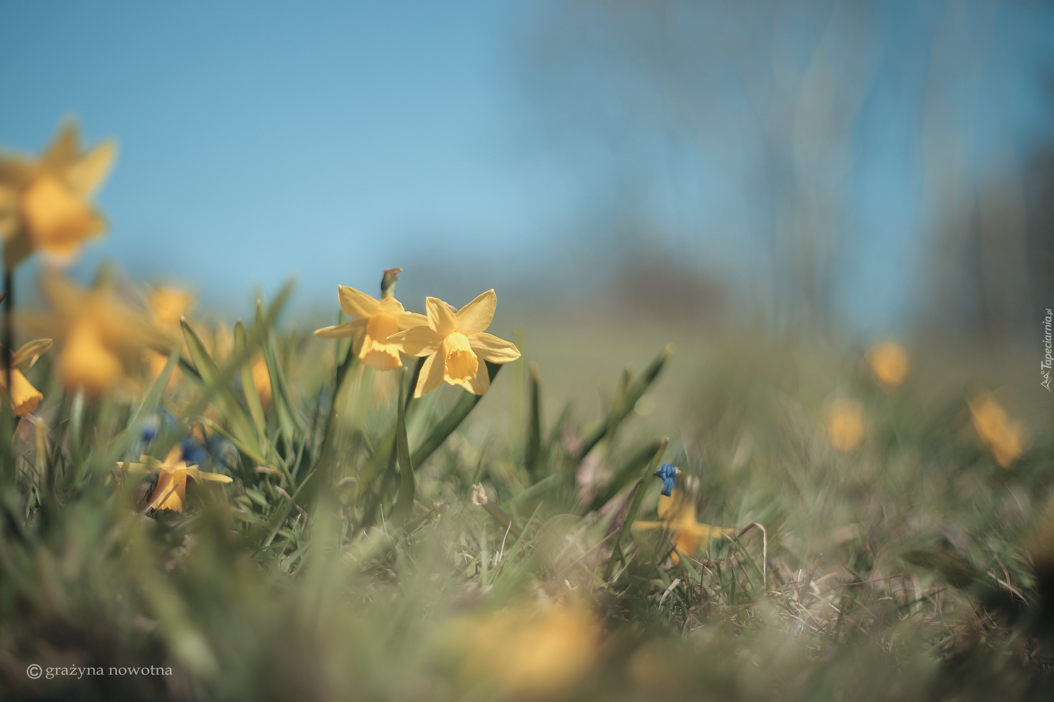 Edytor tapety: Żółte żonkile na rozmytym tle