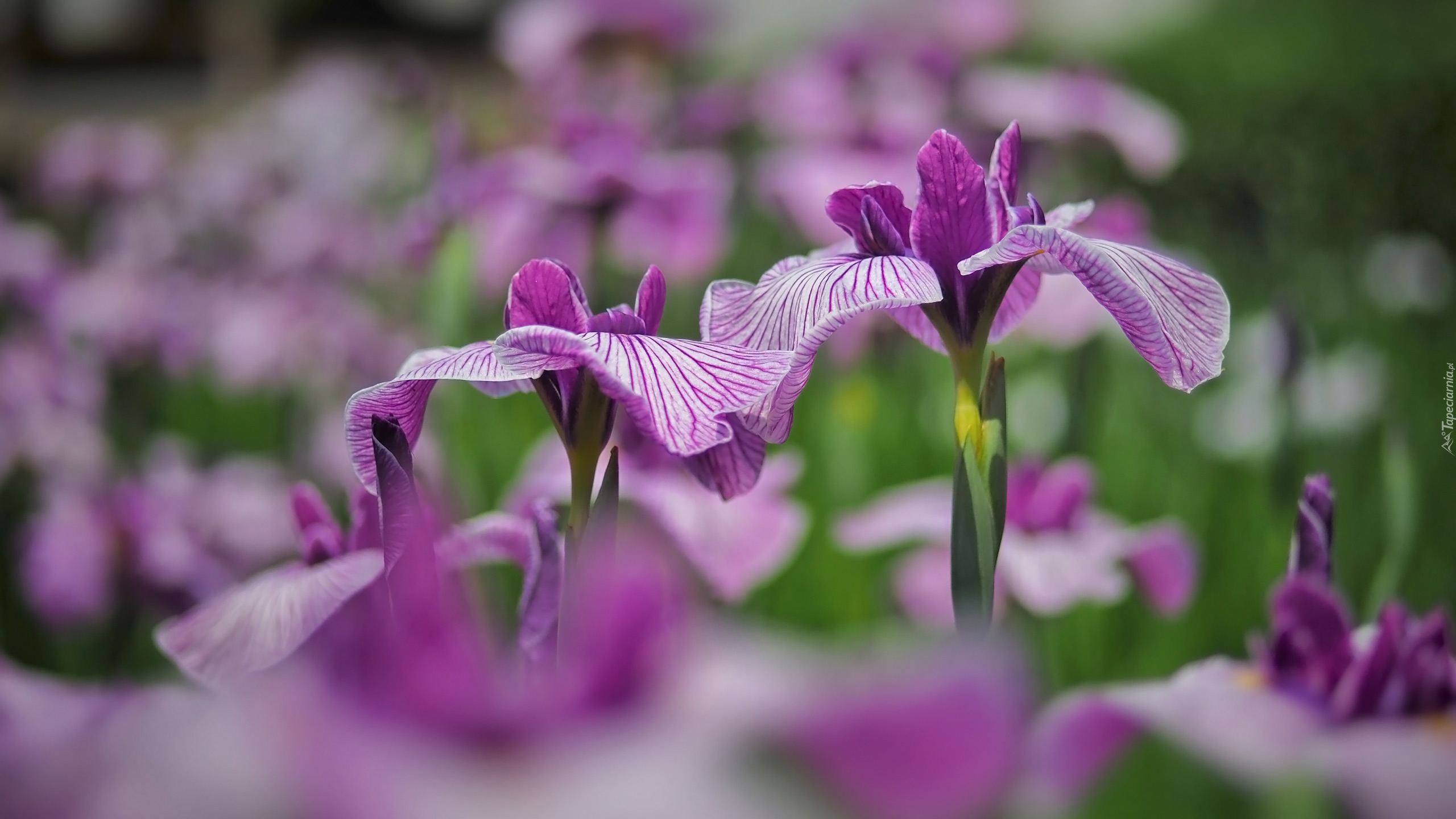 Edytor tapety: Fioletowe irysy na rozmytym tle