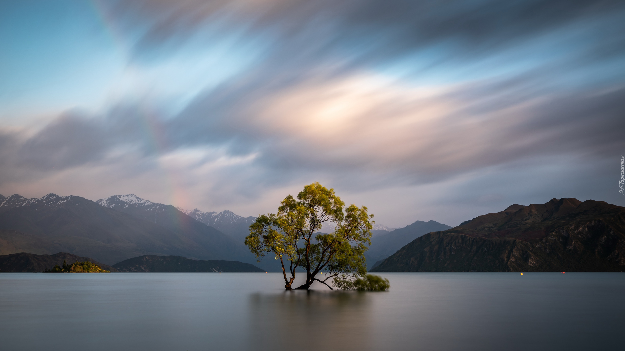 Edytor tapety: Zielone drzewo na jeziorze Wanaka