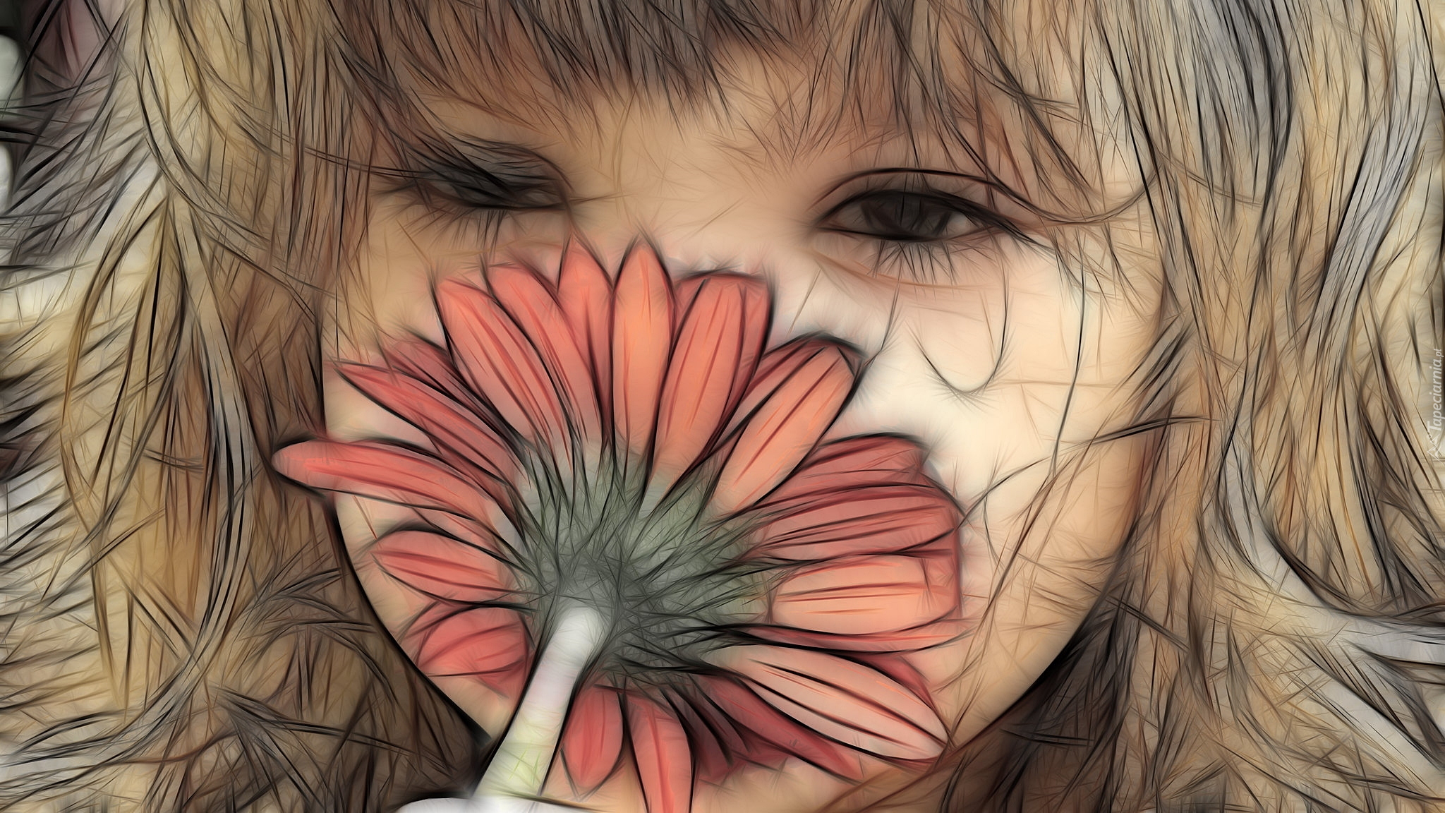 Edytor tapety: Dziewczynka z kwiatkiem w grafice fractalius