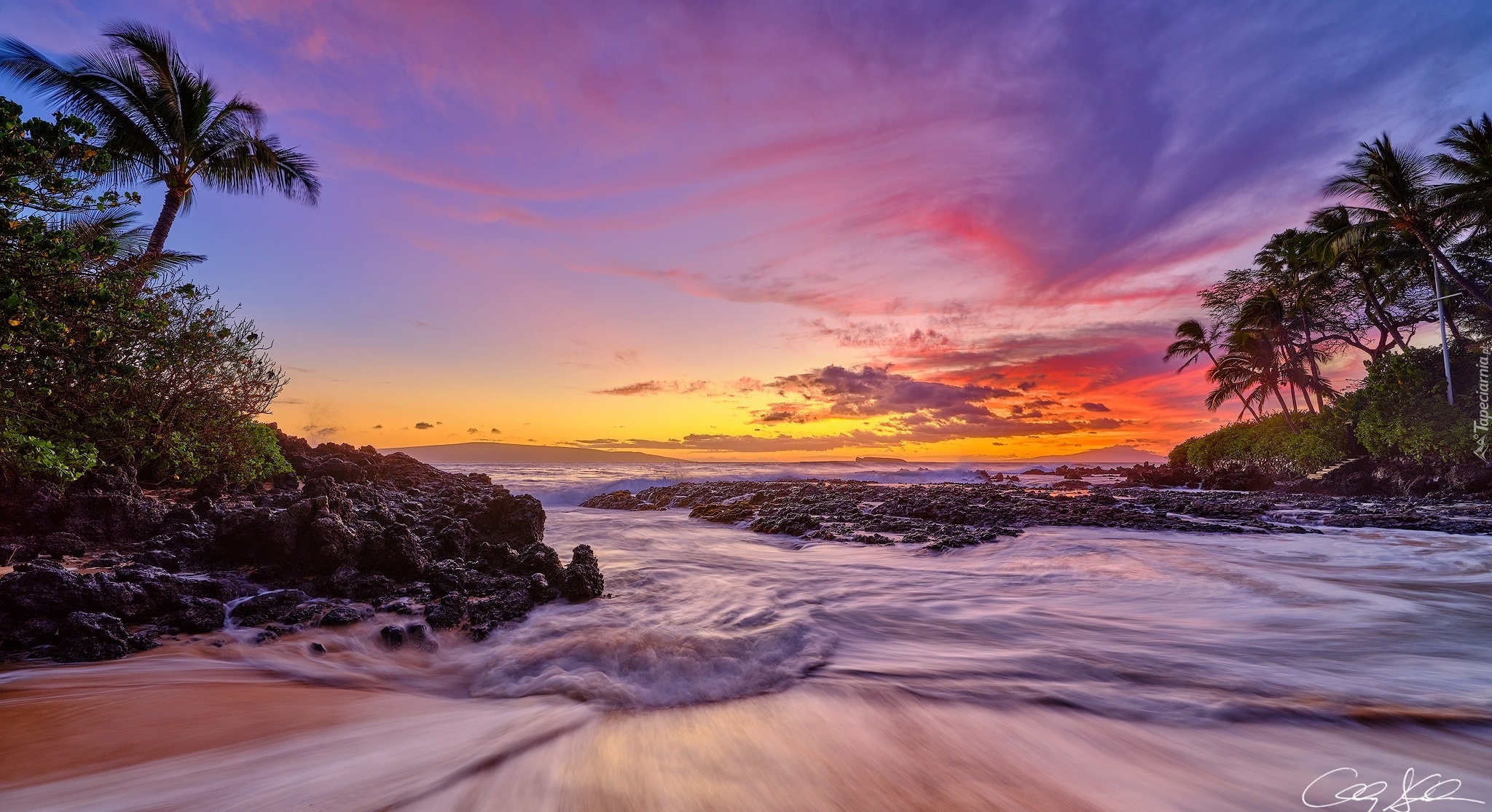 Edytor tapety: Kolorowy zachód słońca nad hawajską plażą