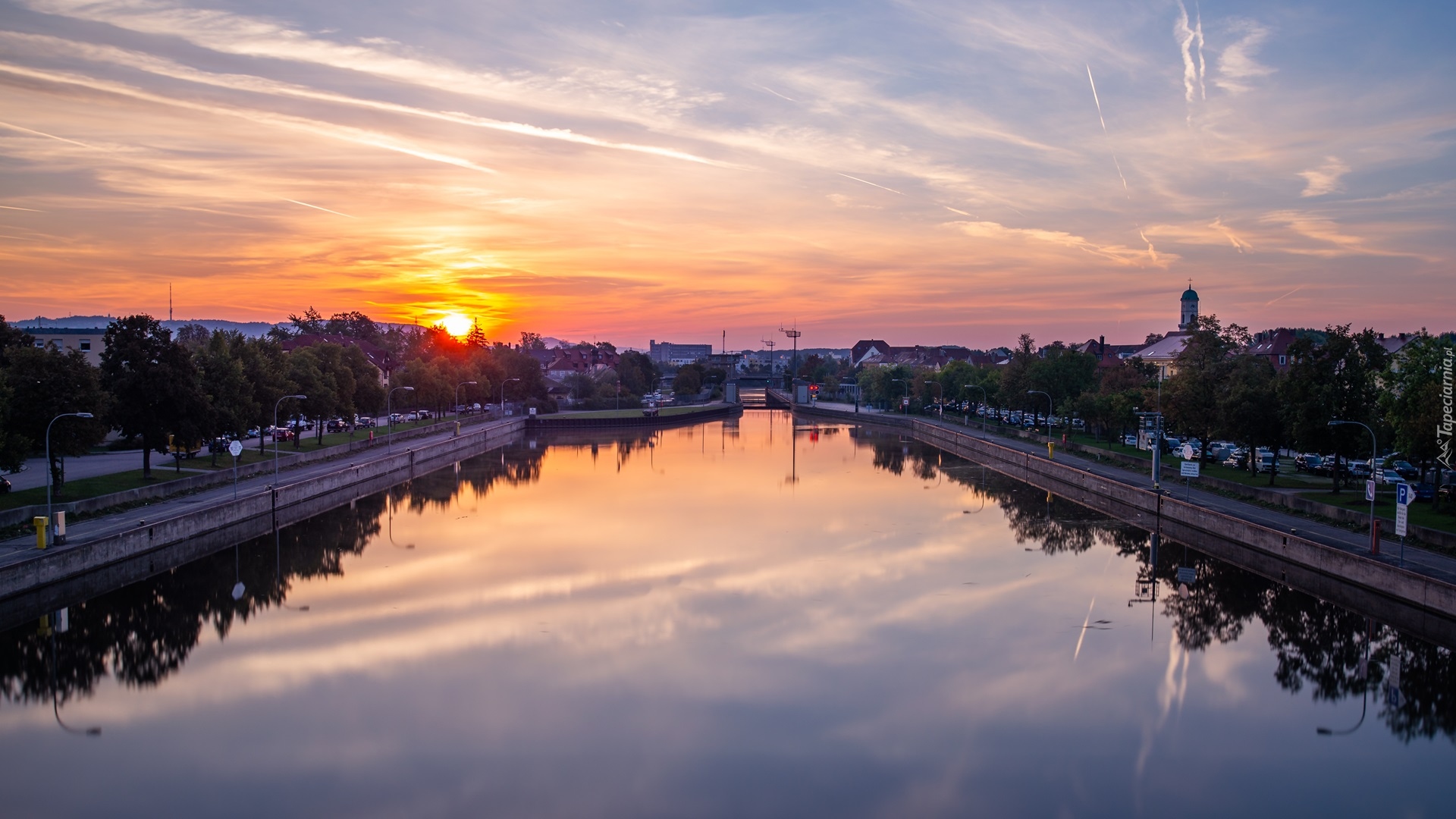 Edytor tapety: Regensburg nad Dunajem o zachodzie słońca