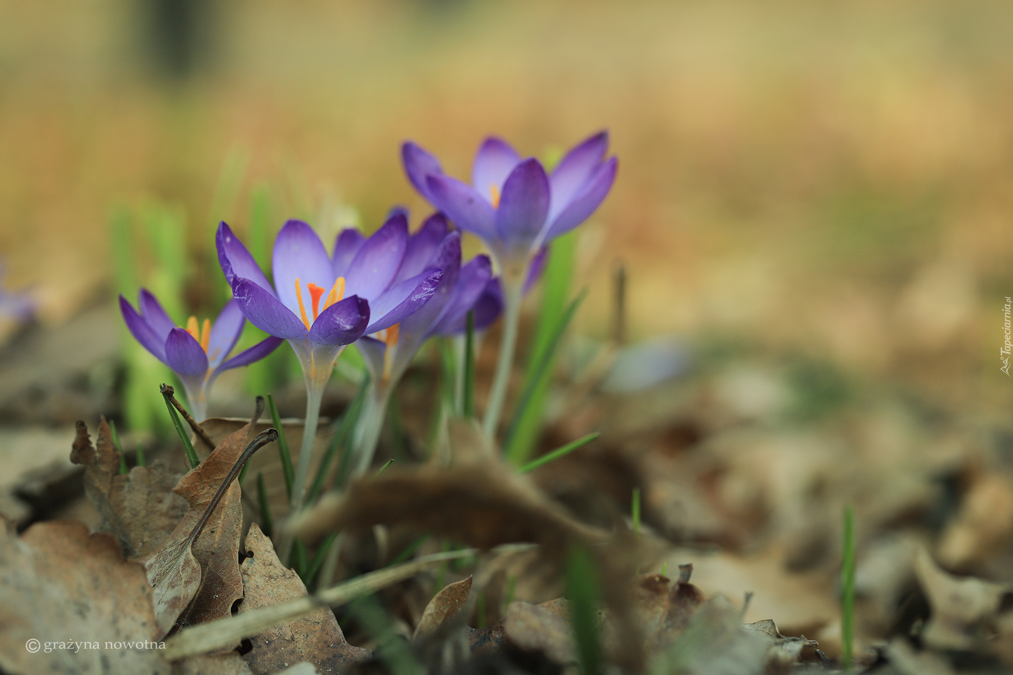 Edytor tapety: Kępka rozwiniętych fioletowych krokusów