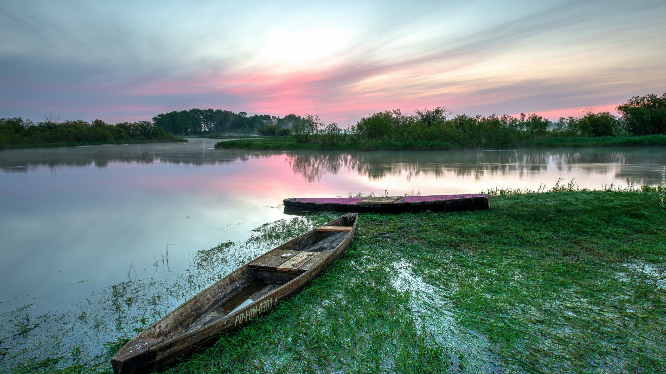 Edytor tapety: Dwie łódki pośród trawy na rzece