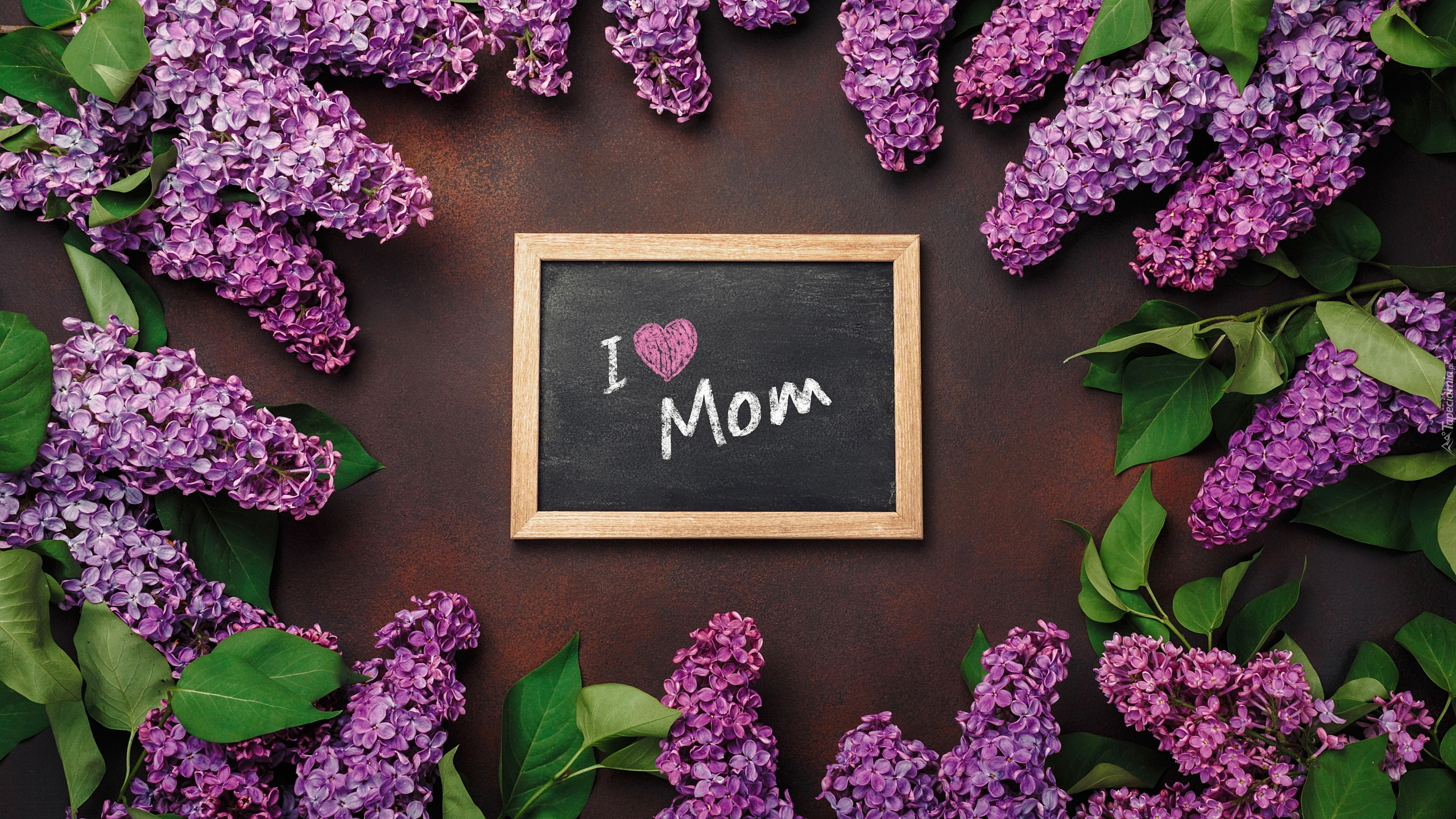 Edytor tapety: Tabliczka z życzeniami na Dzień Matki wśród bzu