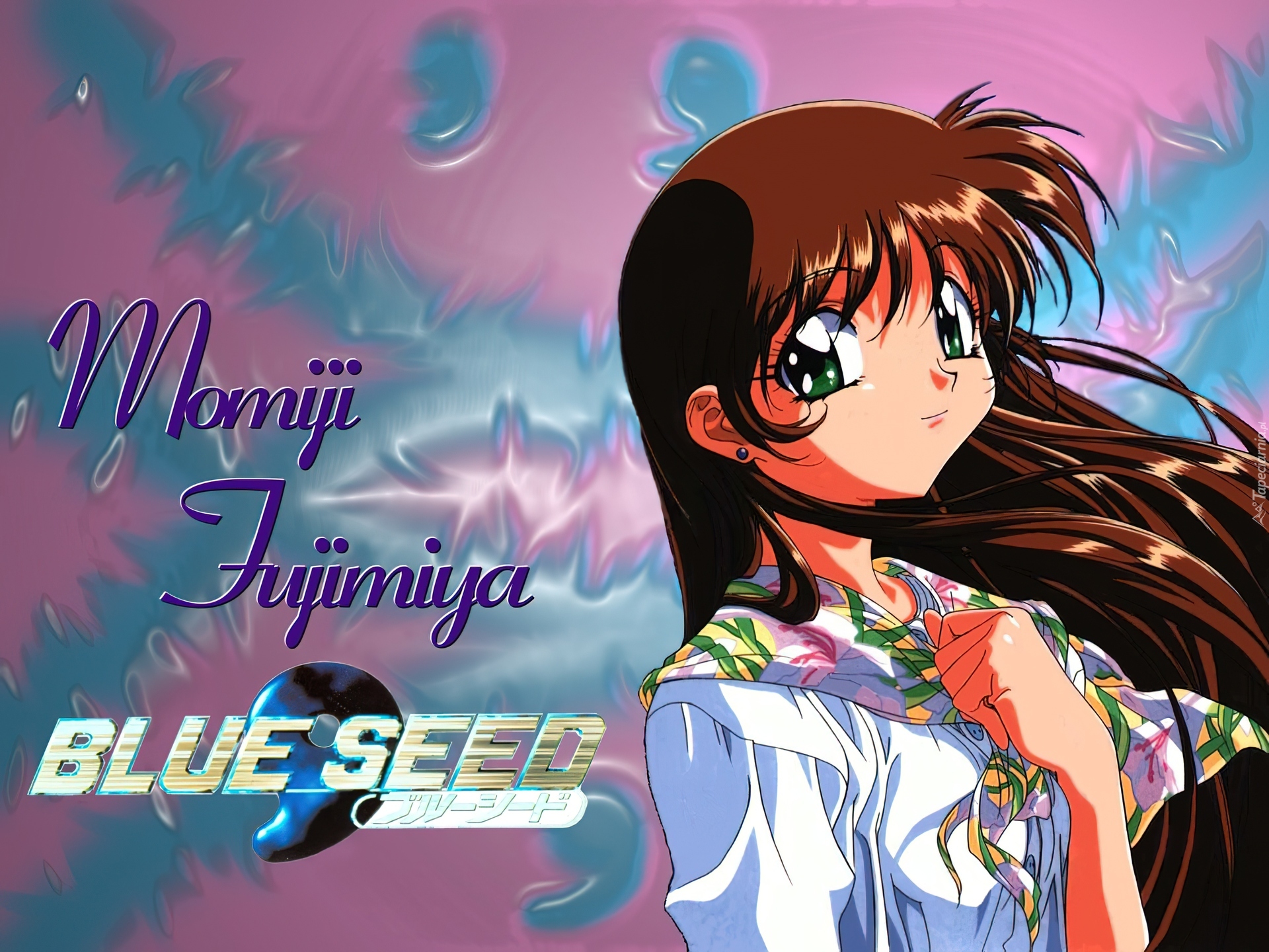 Edytor tapety: Blue Seed, dziewczyna, napisy, twarz