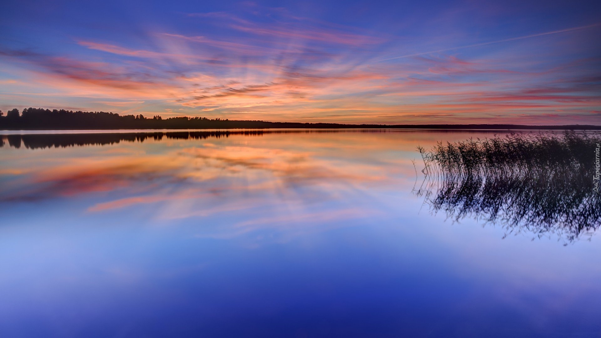 Edytor tapety: Odbicie w jeziorze kolorowego nieba