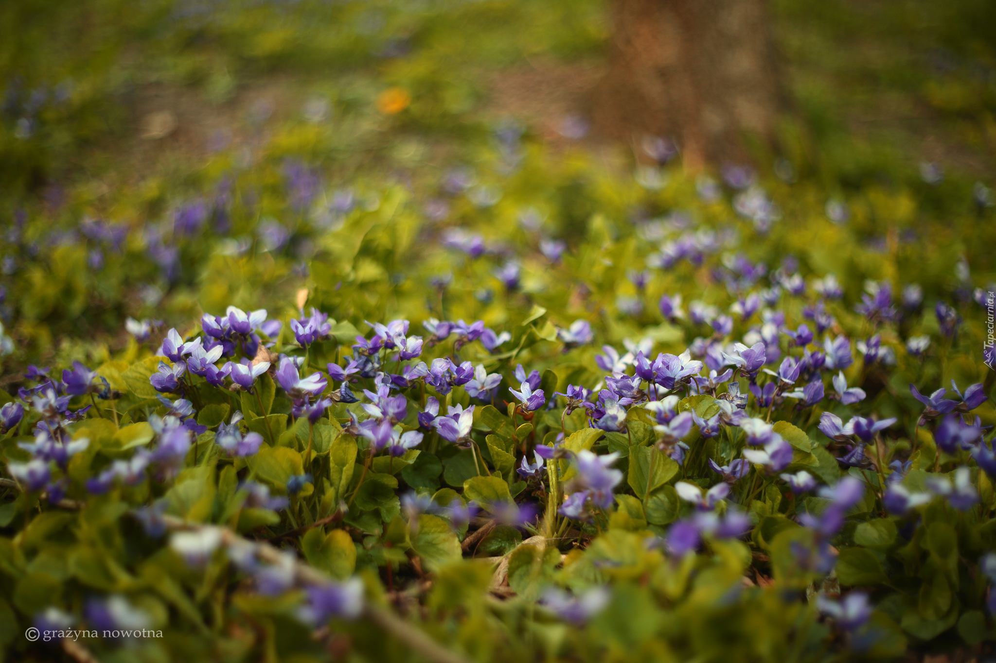 Edytor tapety: Fioletowe fiołki wonne na rozmytym tle
