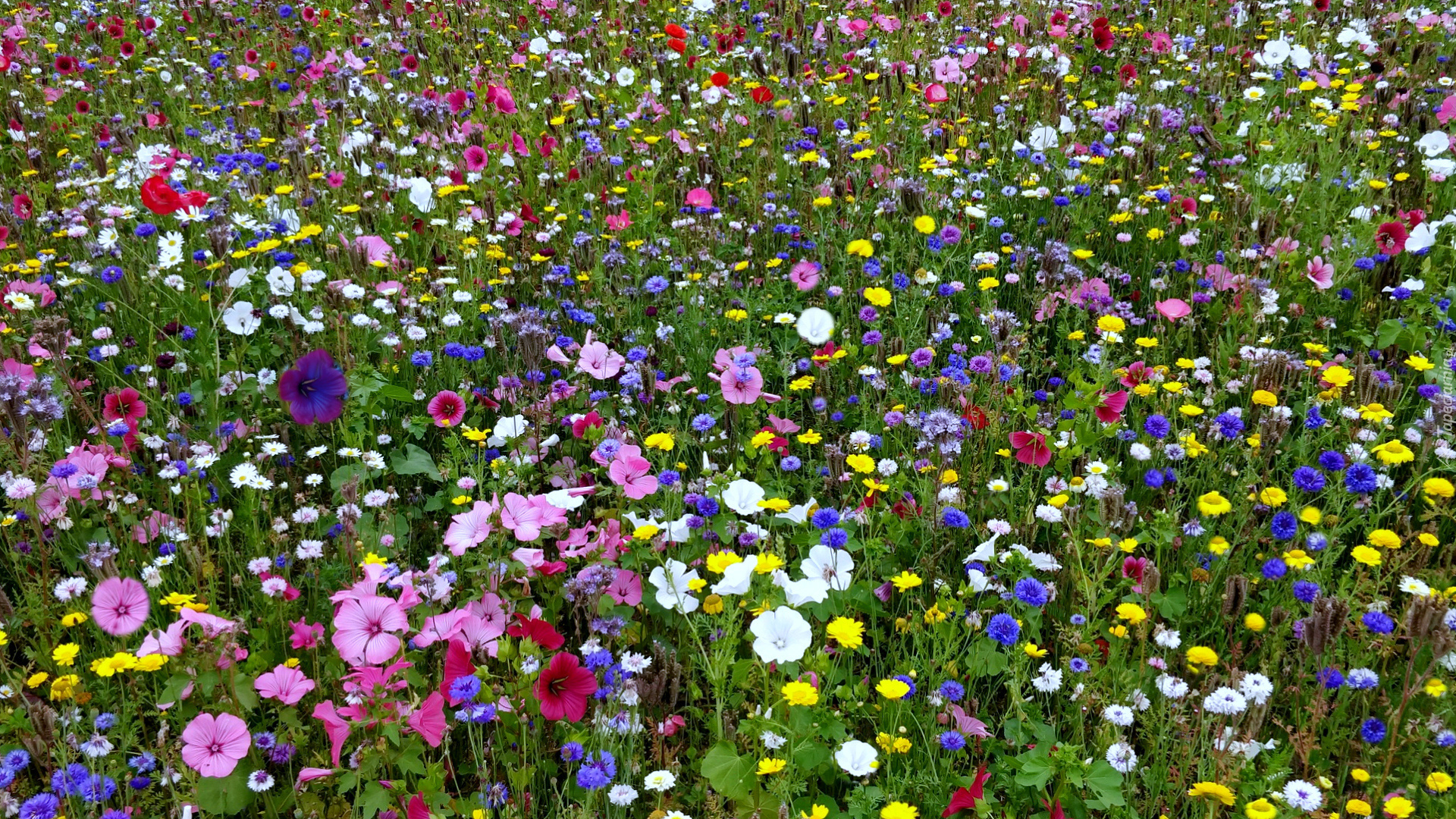 Edytor tapety: Różnorodne kwiaty na łące