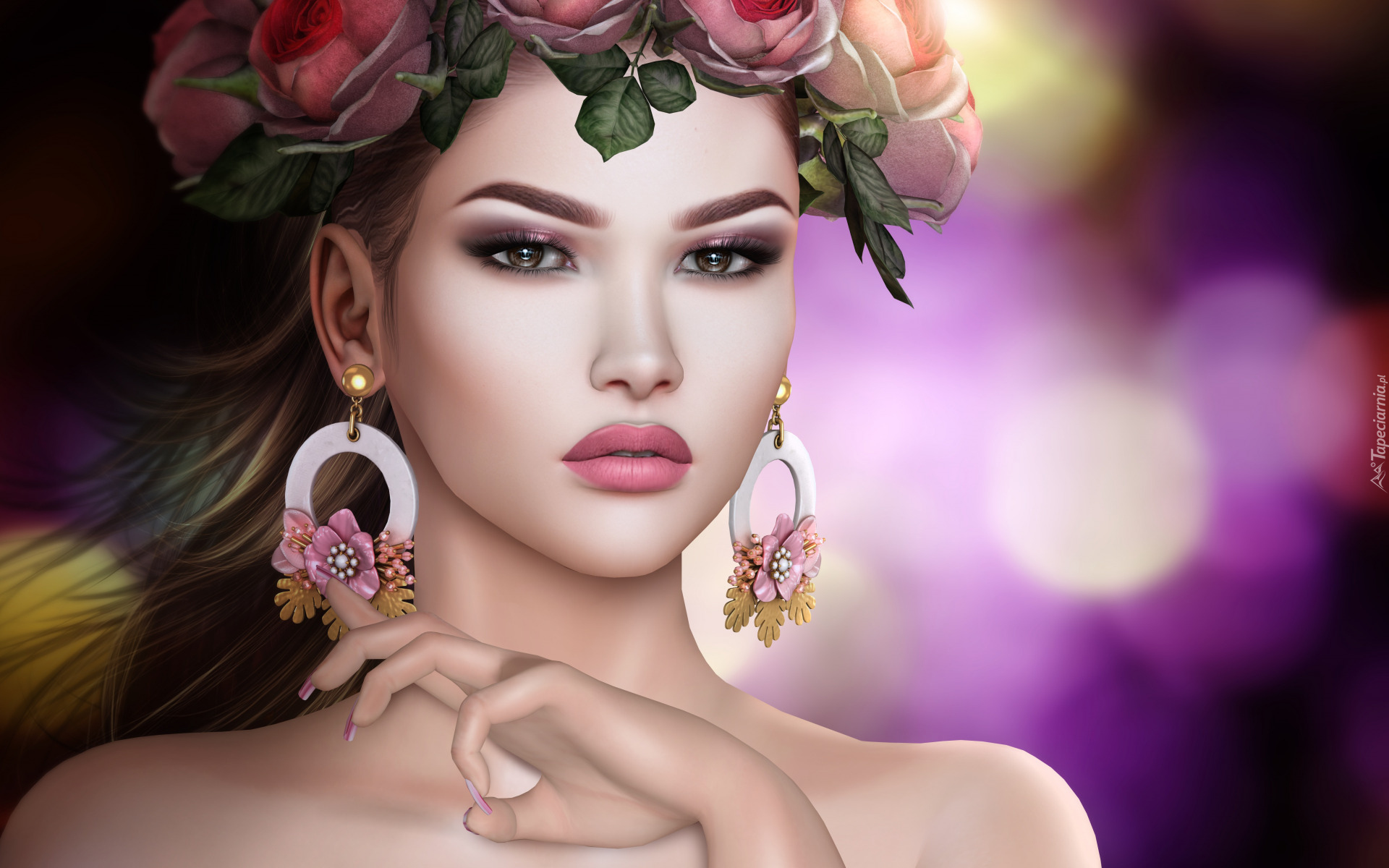 Edytor tapety: Dziewczyna z kolczykami i wiankiem w grafice