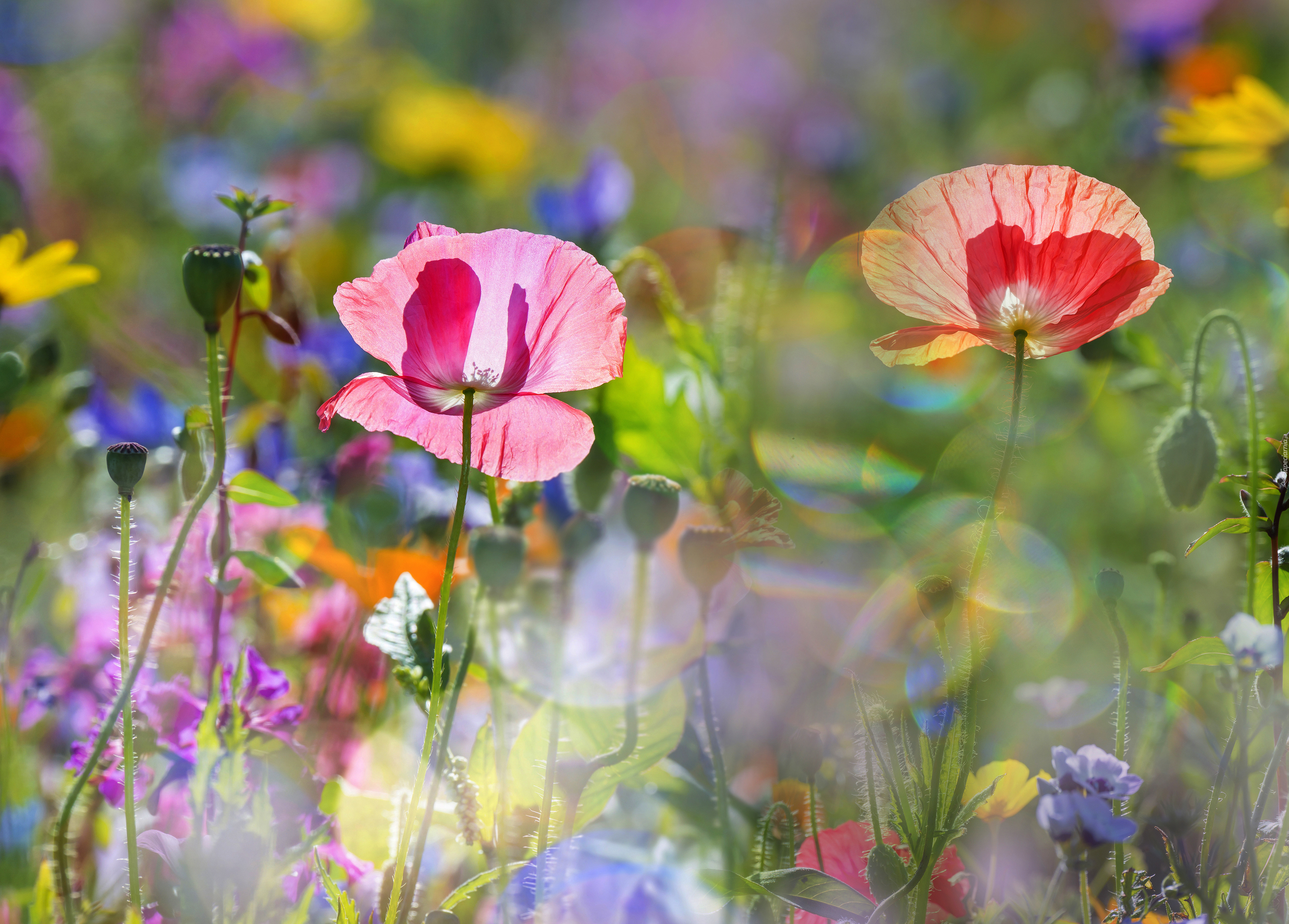Edytor tapety: Dwa rozświetlone maki na łące