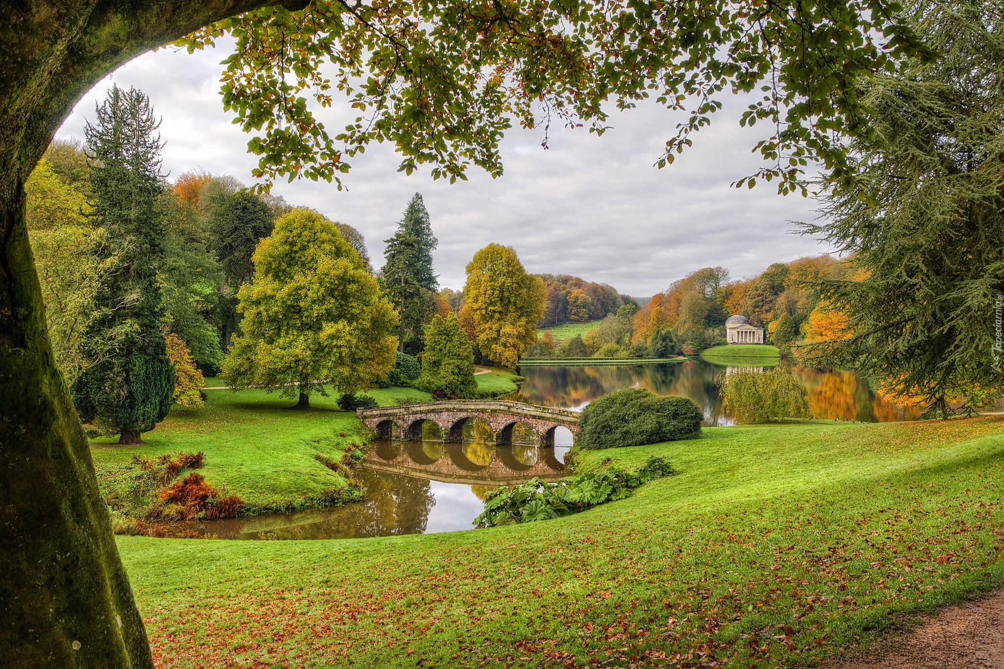 Edytor tapety: Most nad jeziorem w angielskiej rezydencji Stourhead House