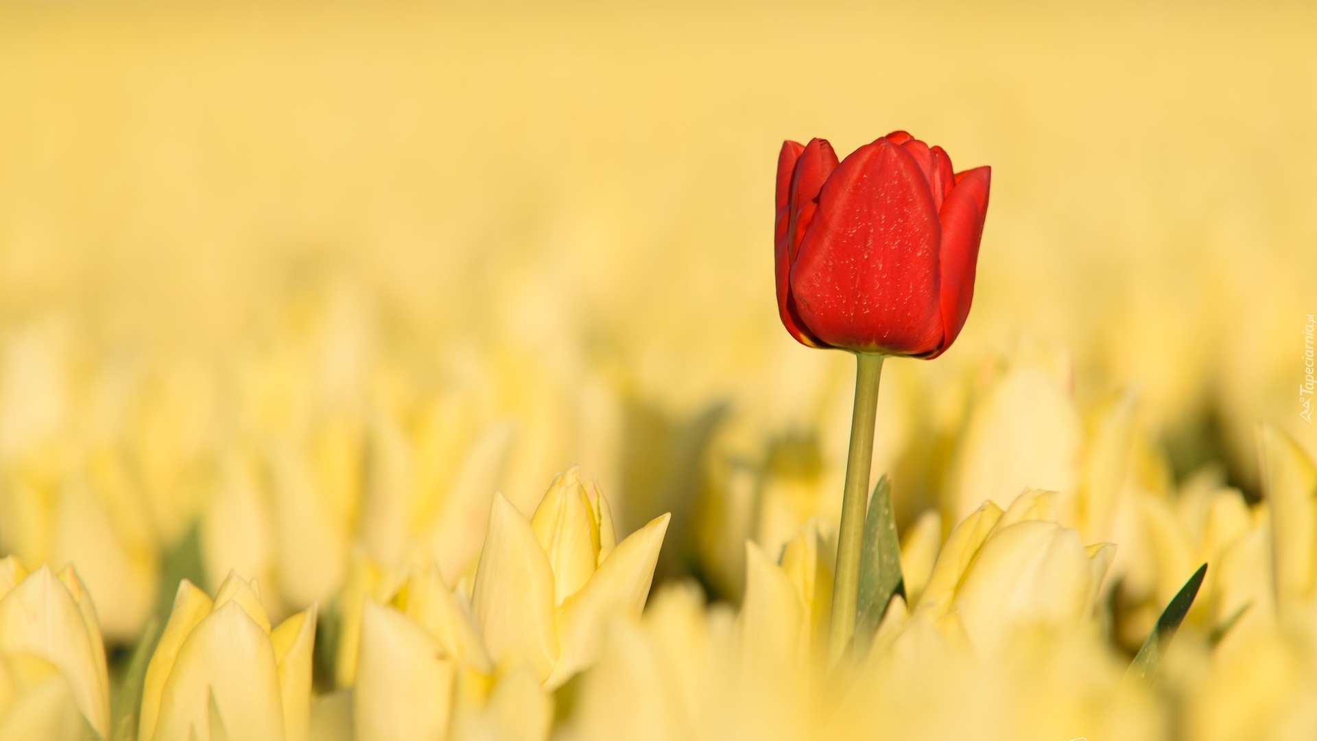 Edytor tapety: Czerwony tulipan wśród żółtych tulipanów