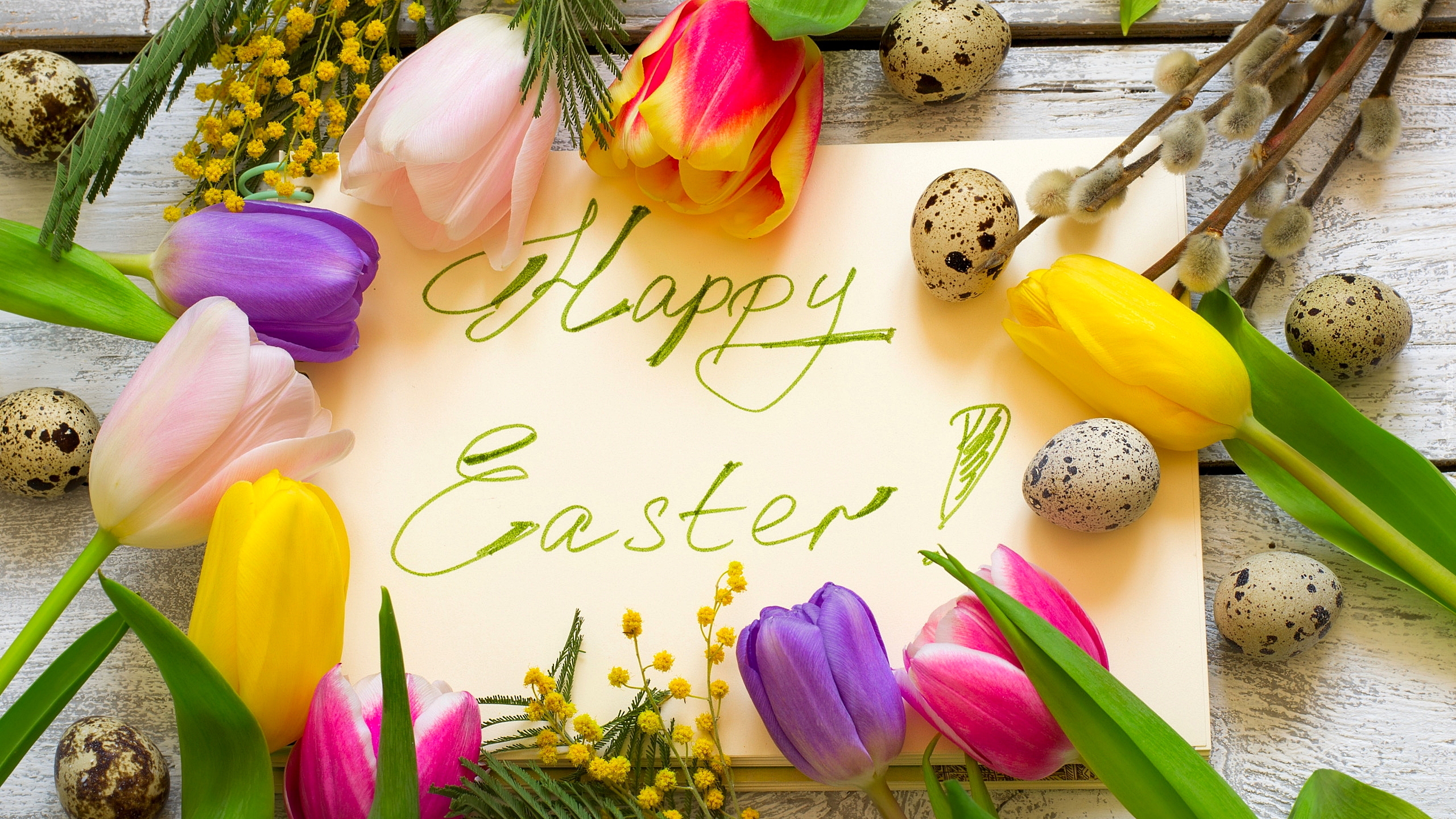 Edytor tapety: Wielkanocne życzenia pośród kwiatów
