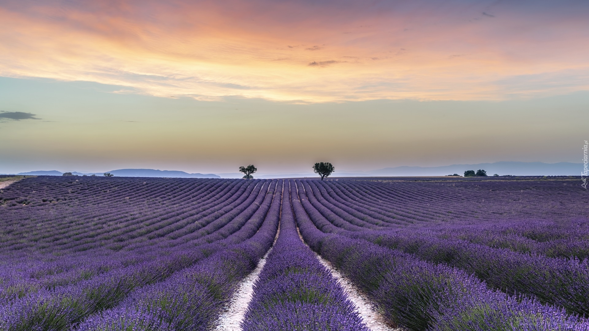 Edytor tapety: Lawendowe pole o wschodzie słońca