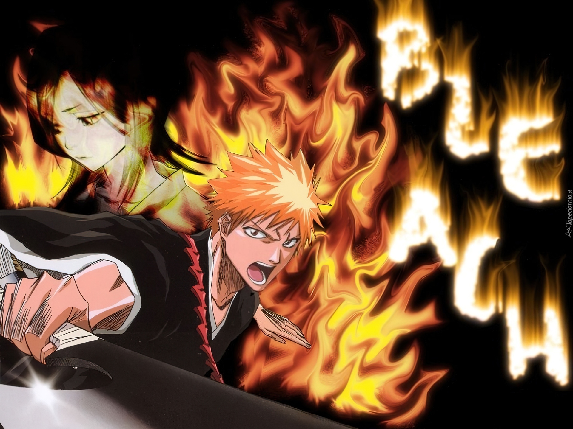 Edytor tapety: Bleach, ludzie, katana, płomienie, napis