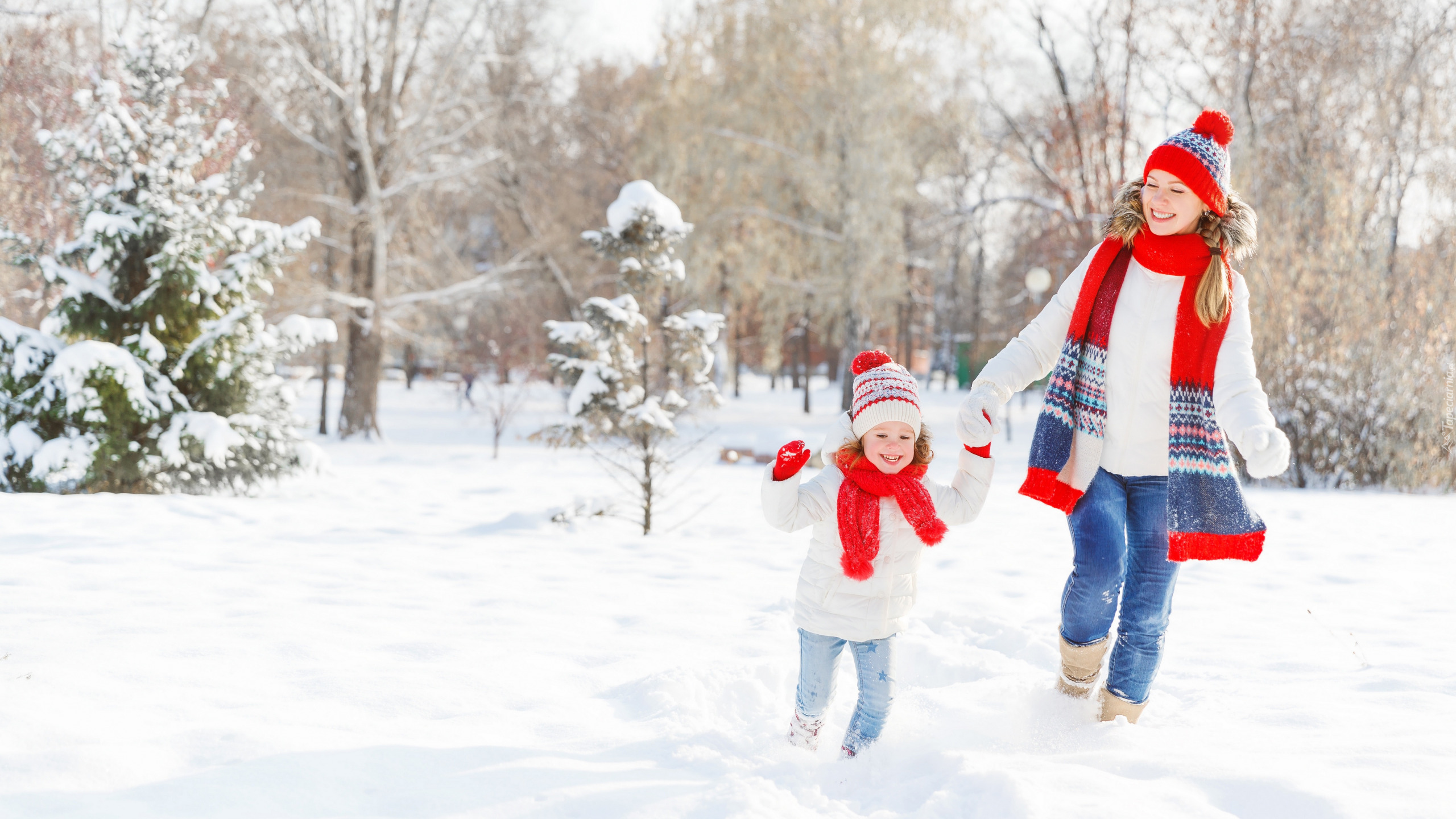 Edytor tapety: Mama z dzieckiem na spacerze zimową porą