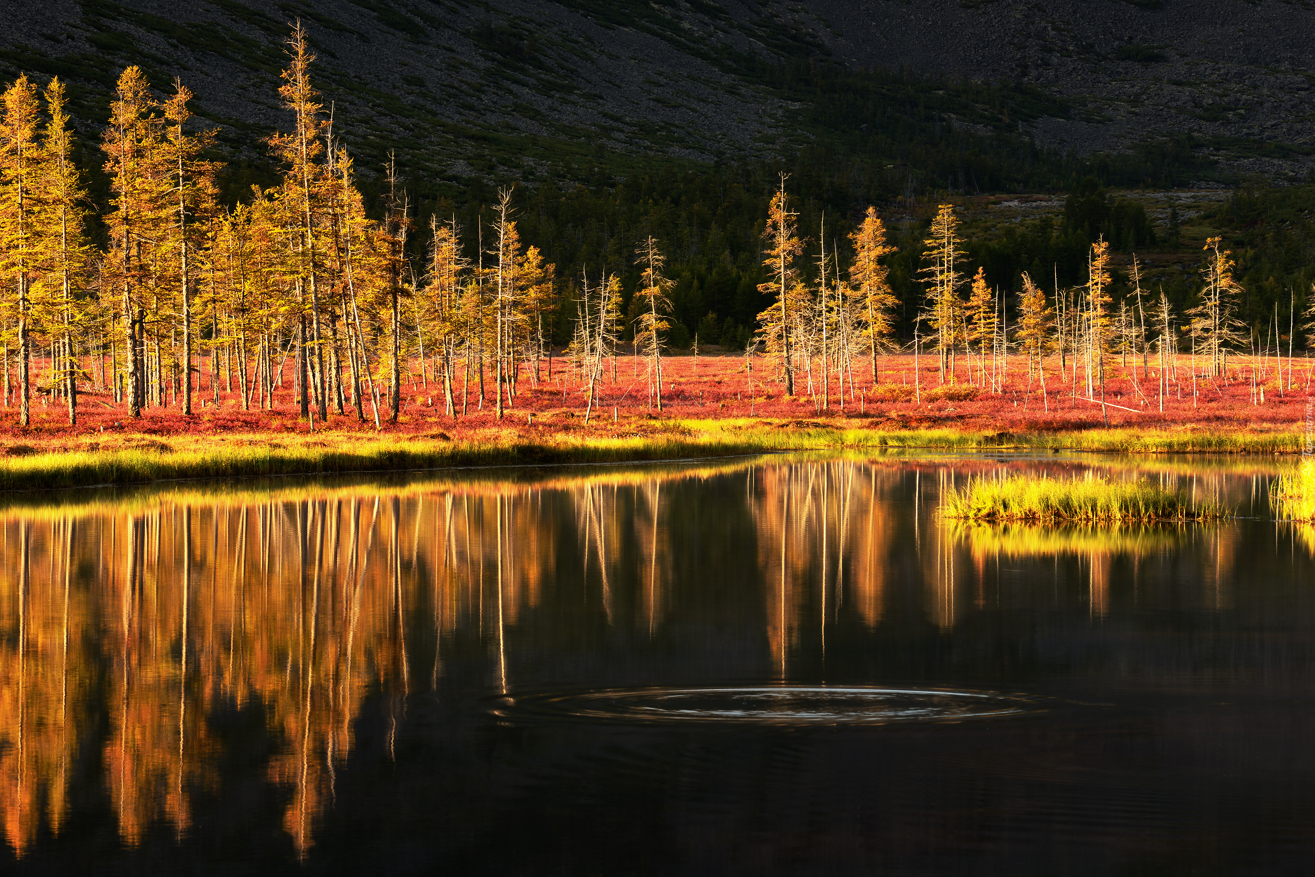 Edytor tapety: Drzewa nad jeziorem Jack London jesienną porą