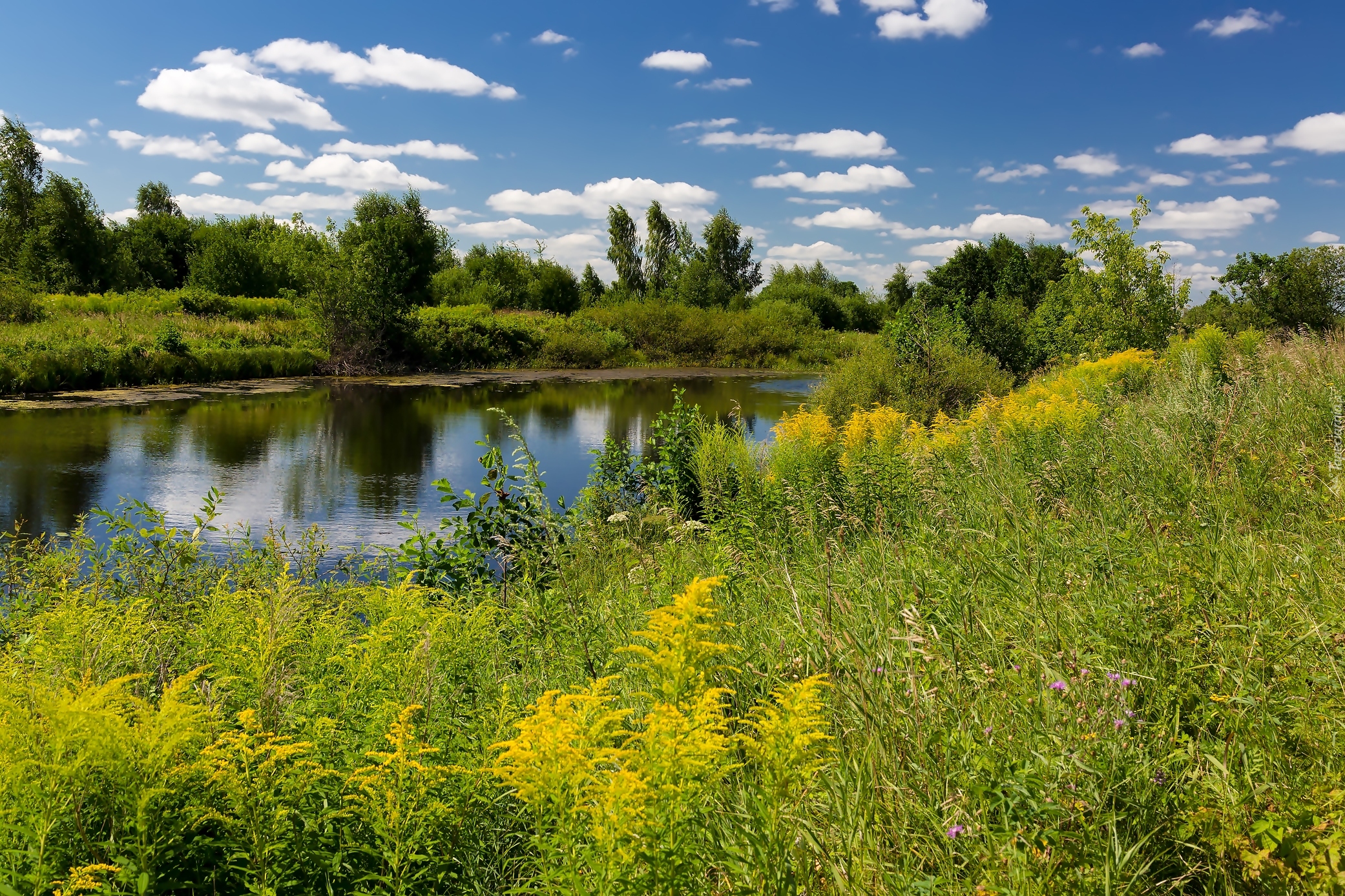 Edytor tapety: Bujna roślinność nad rzeką