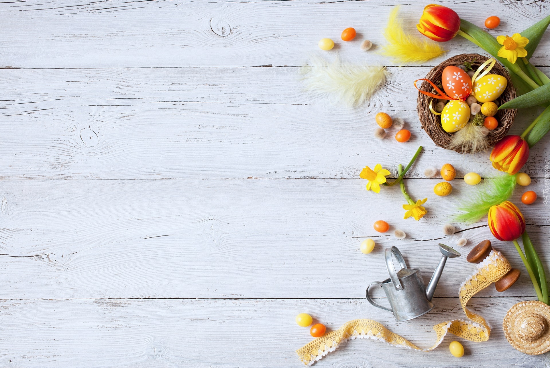 Edytor tapety: Kompozycja wielkanocna na deskach