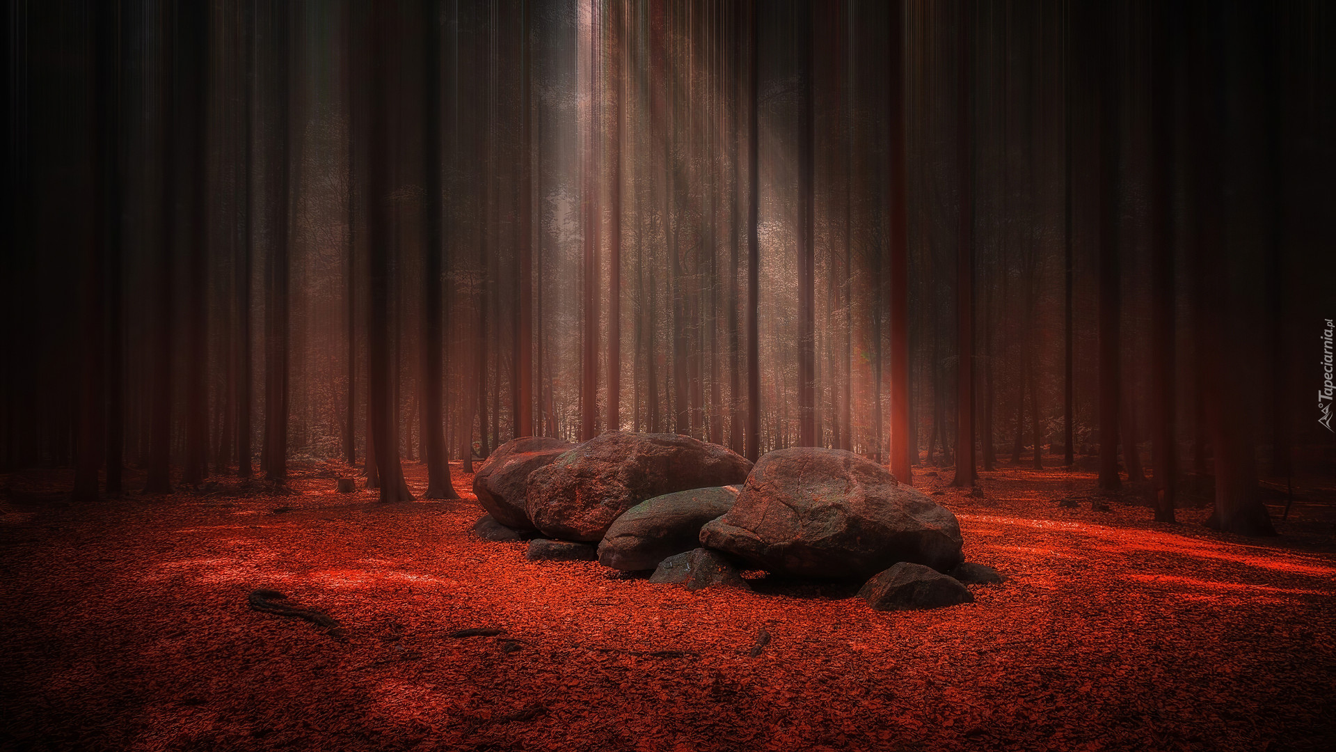 Edytor tapety: Kamienie na czerwonych liściach w lesie