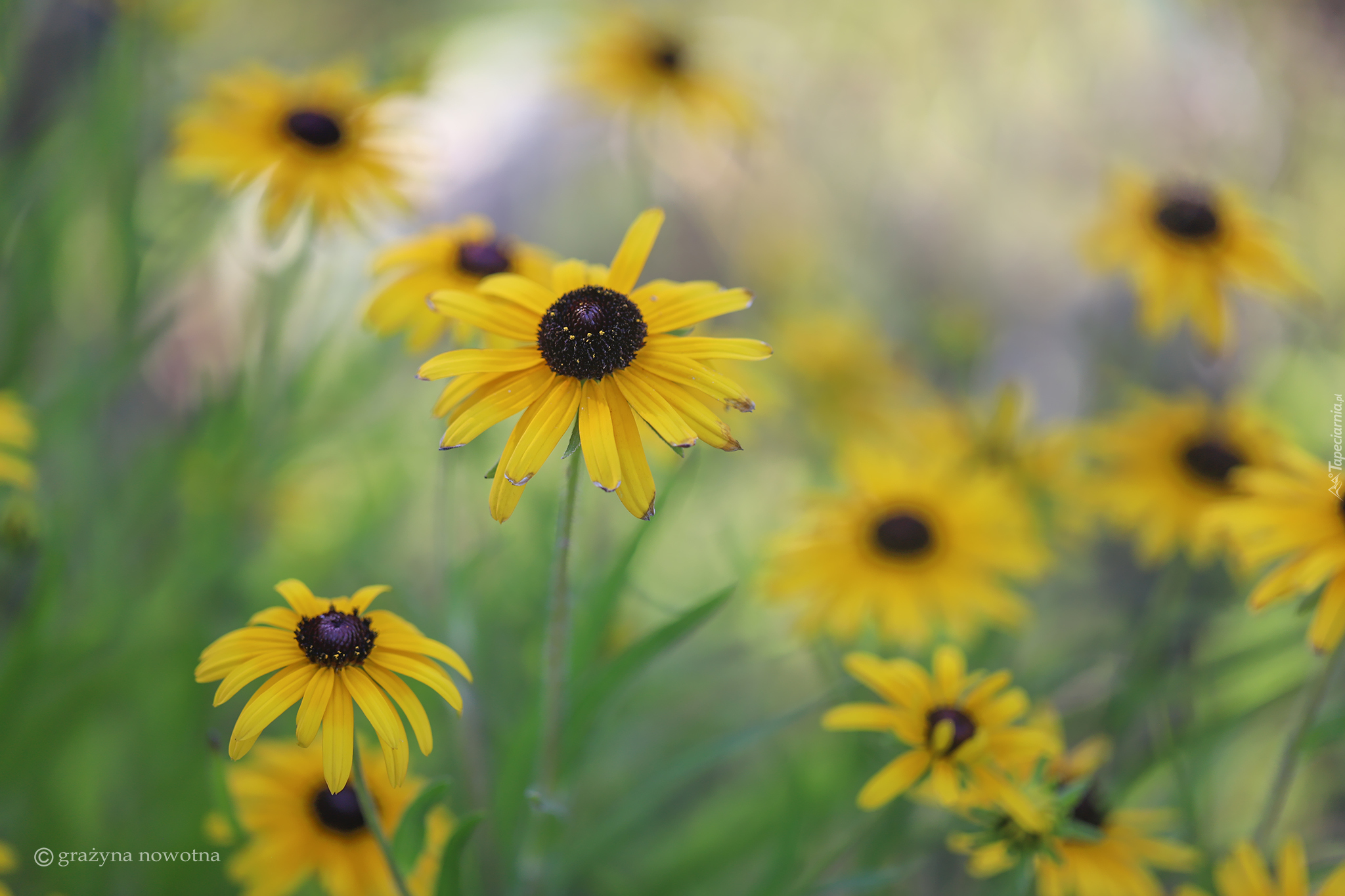 Edytor tapety: Żółte rudbekie na rozmytym tle