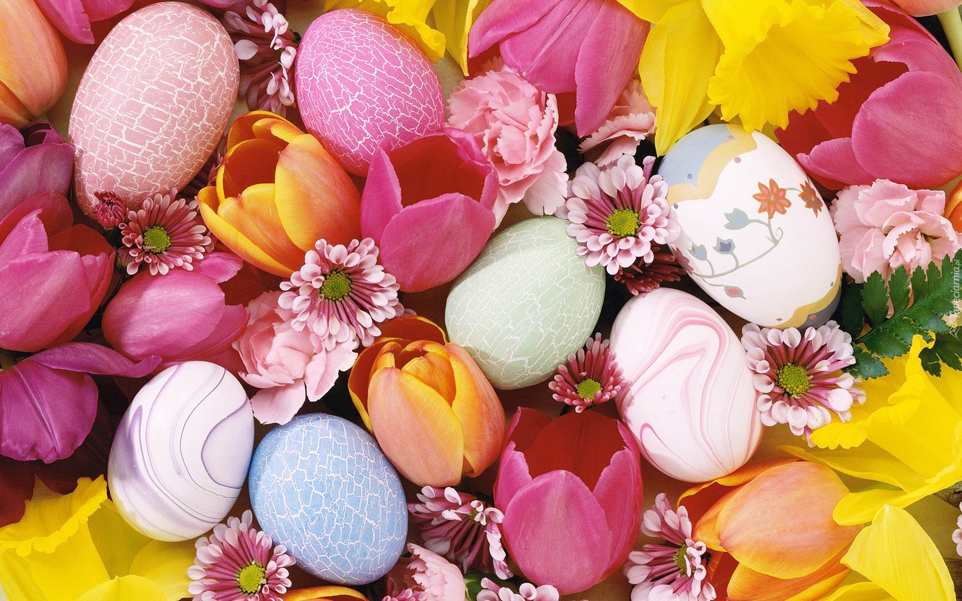 Edytor tapety: Wielkanocne pisanki w wiosennych kwiatach